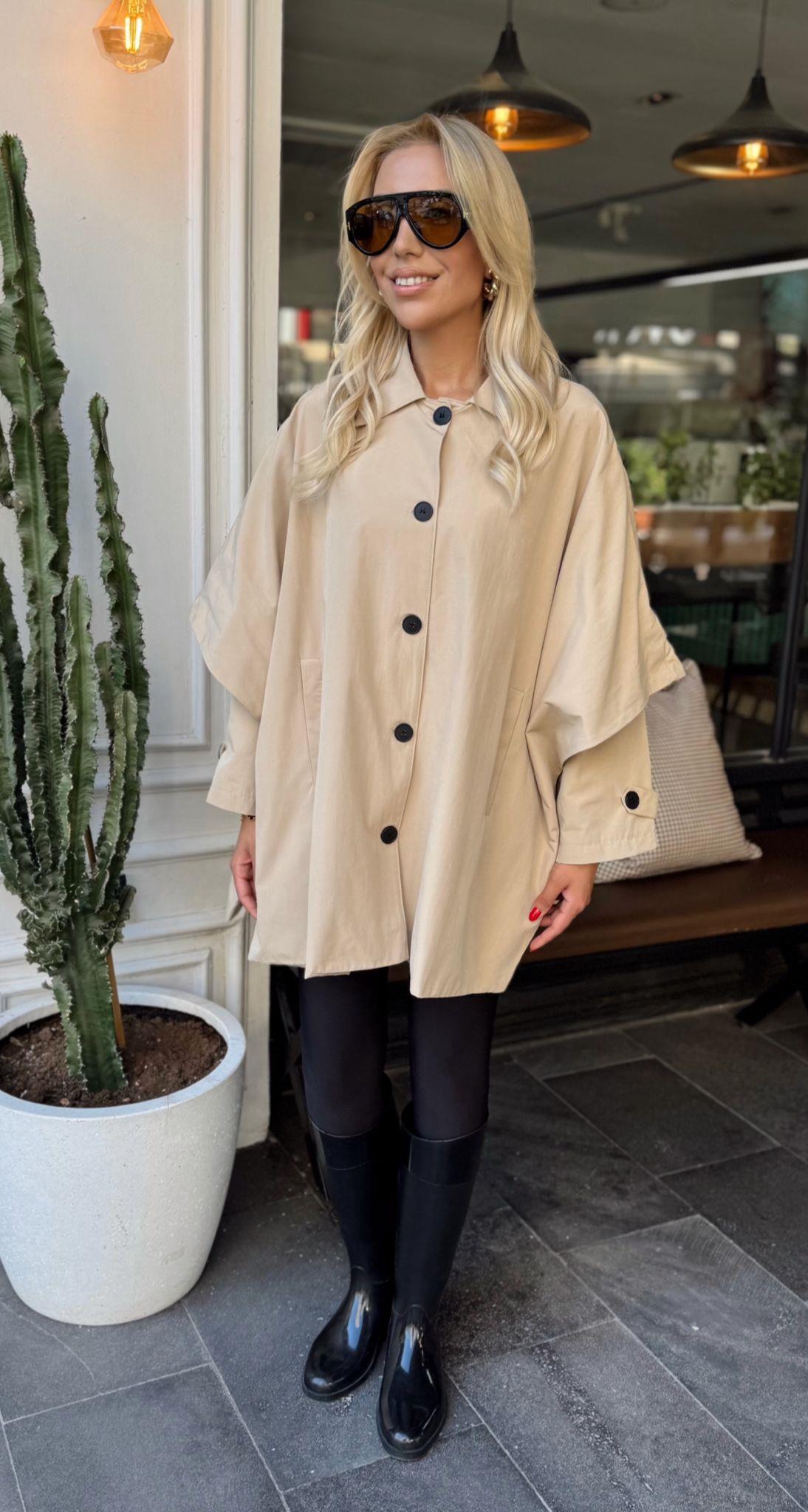 BEJ DÜĞME DETAYLI PANÇO (ST01504-BEJ-S)