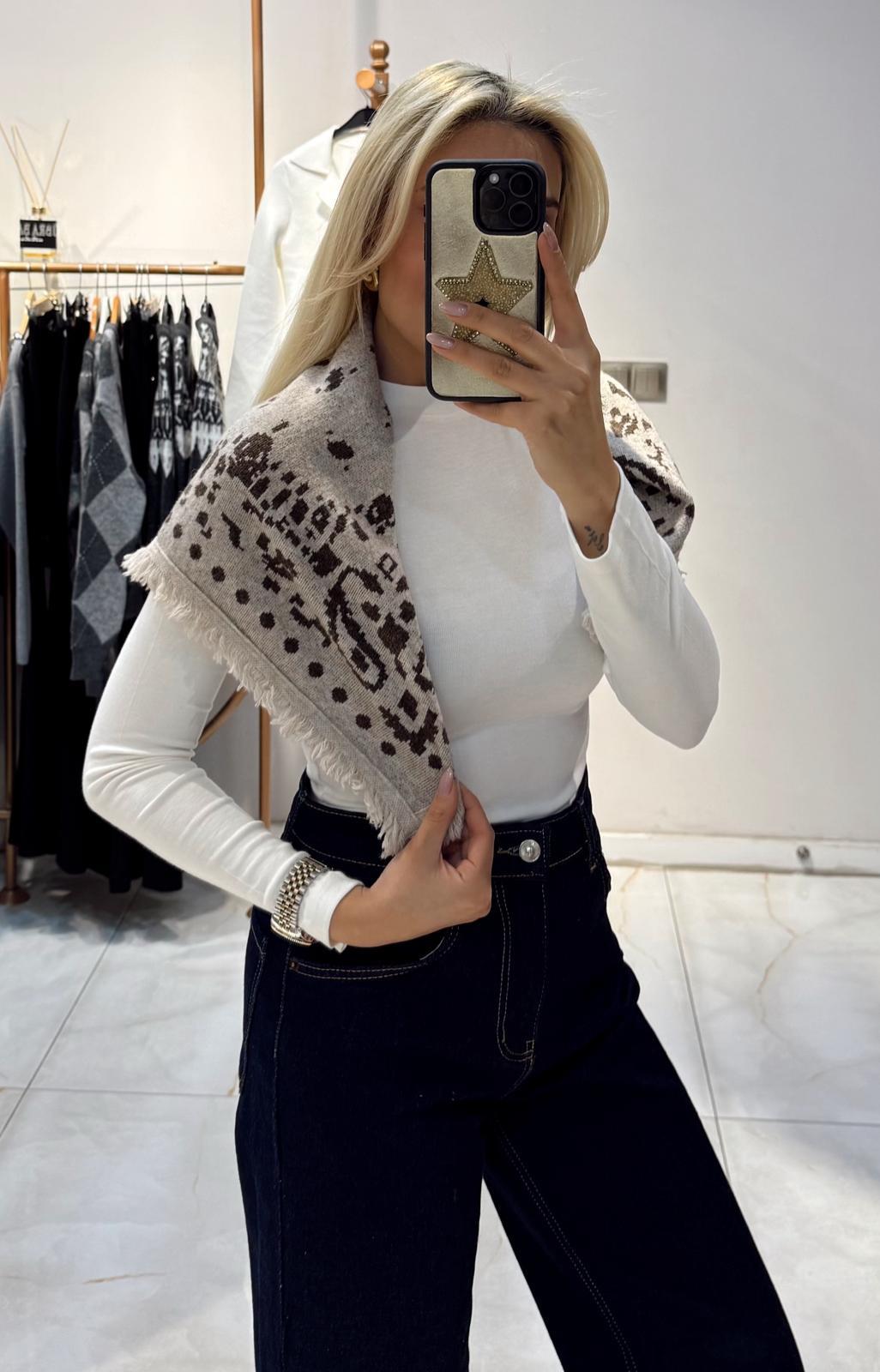 BEJ KÜÇÜK BOY DESENLİ TRİKO ŞAL (ST01708-BEJ-STD)