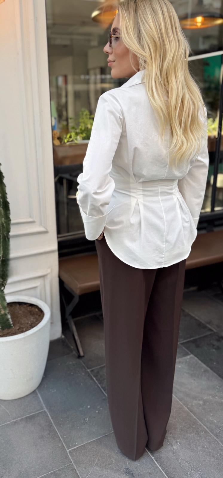 BEYAZ BELDEN PENSLİ GÖMLEK (ST01605-BEYAZ-S)