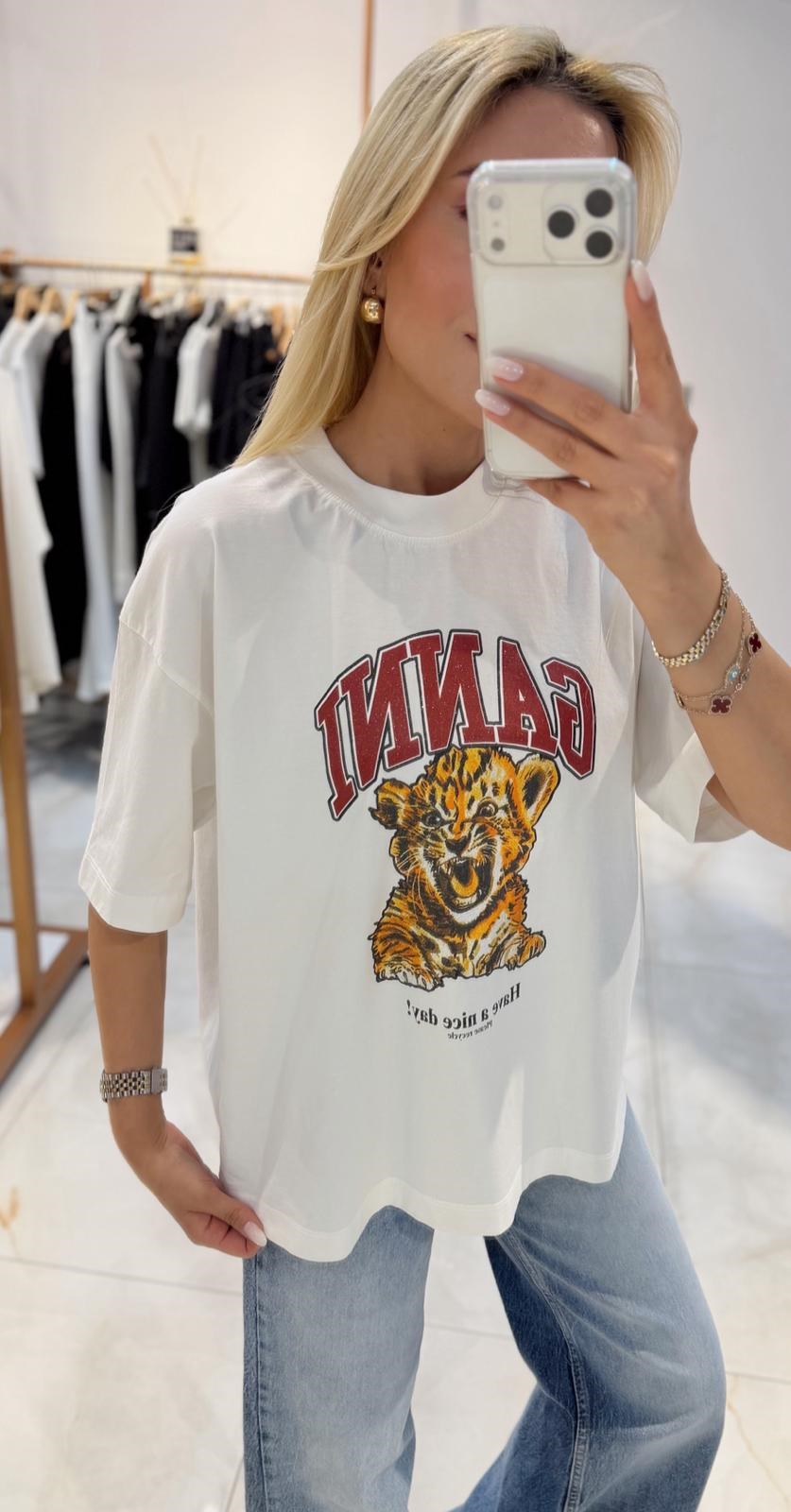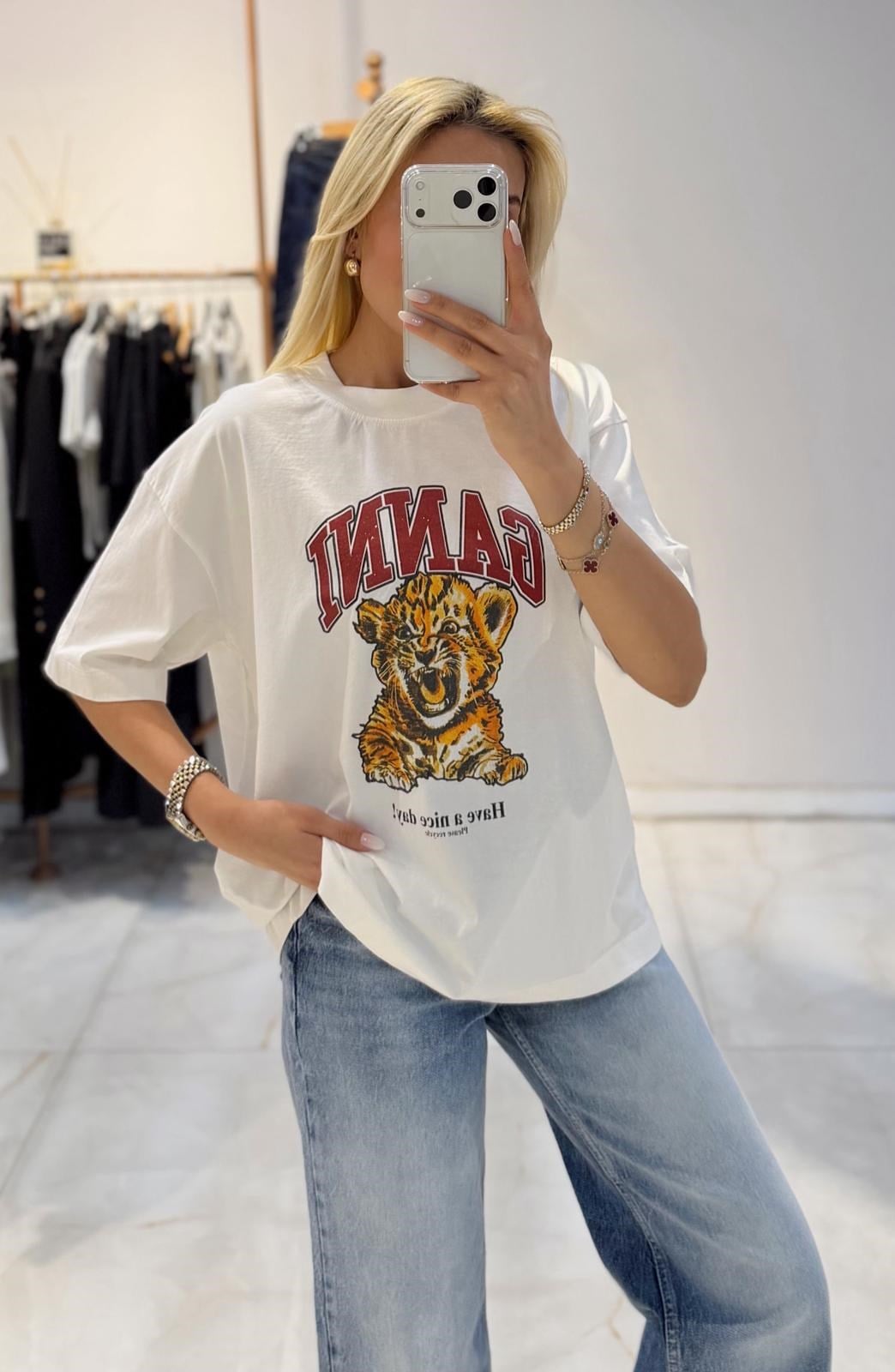 BEYAZ OVERSİZE BASKILI TSHİRT (ST01785-BEYAZ-STD)