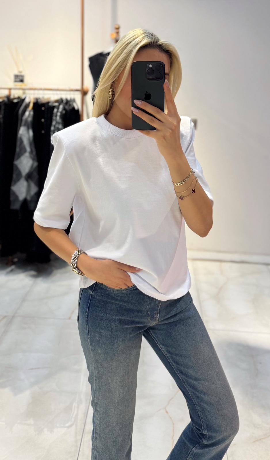 BEYAZ VATKALI BASİC T-SHİRT (ST01156-BEYAZ-S)