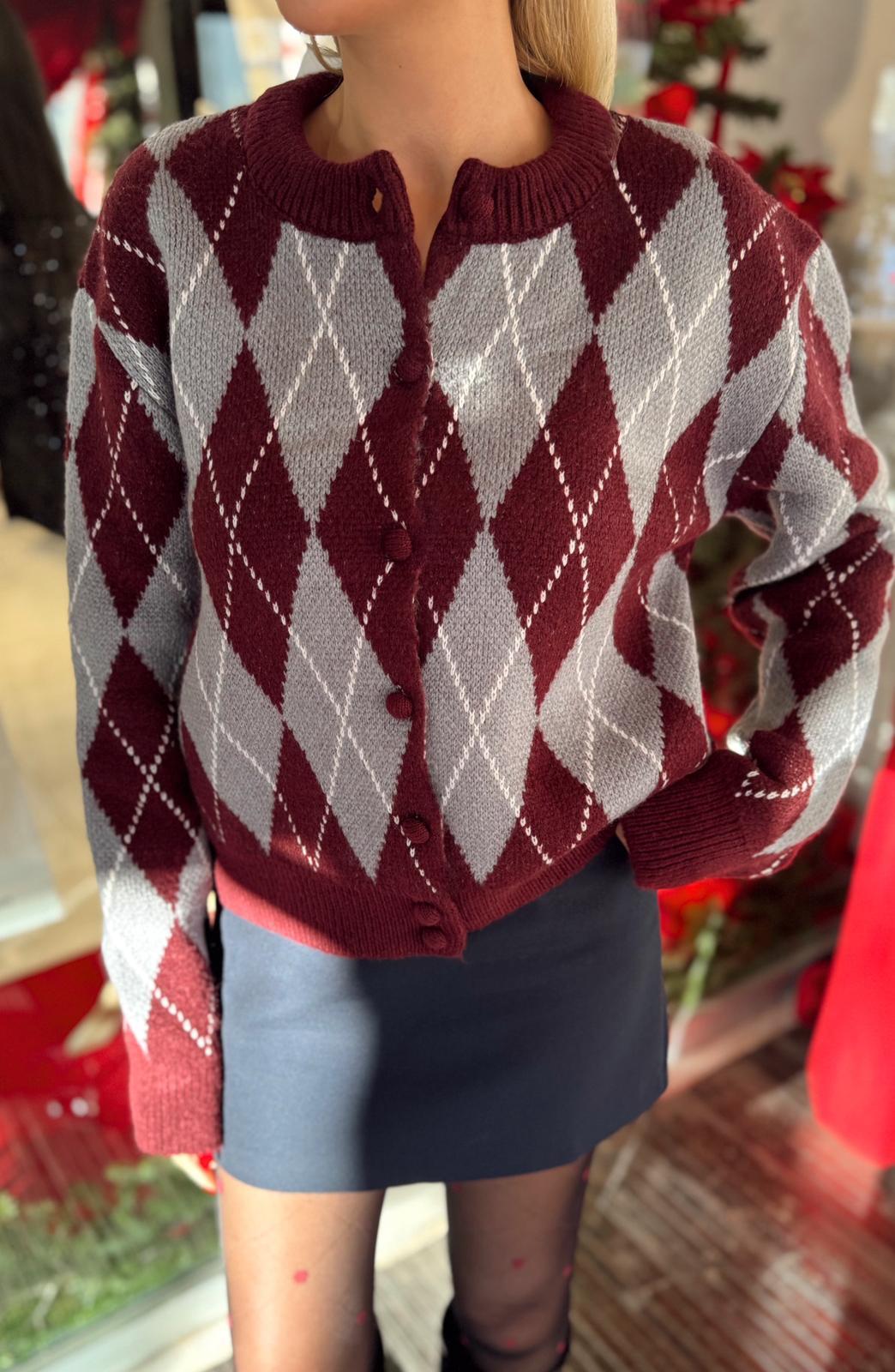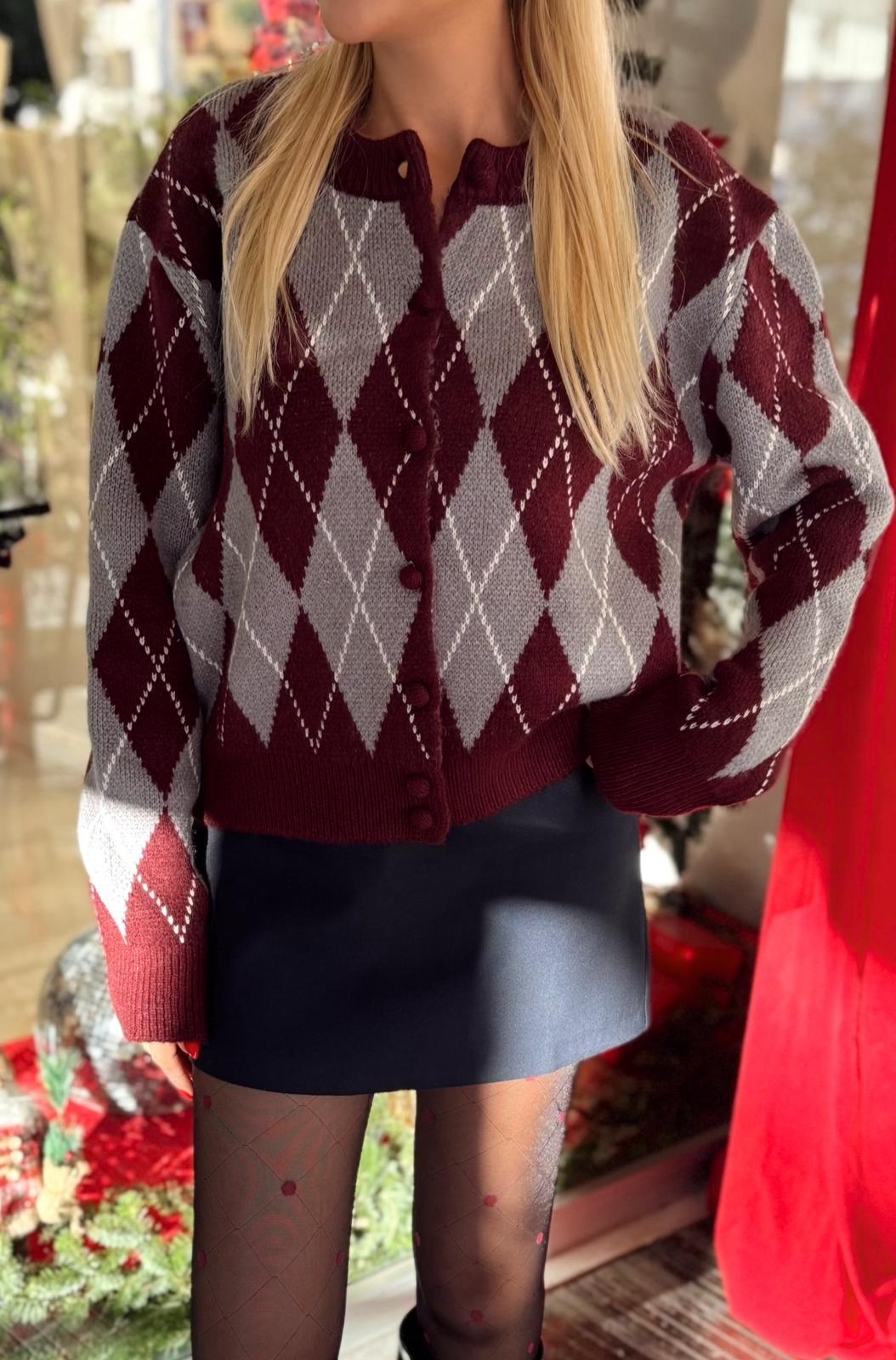 BORDO BAKLAVA DESENLİ DÜĞMELİ HIRKA (ST01593-BORDO-STD)