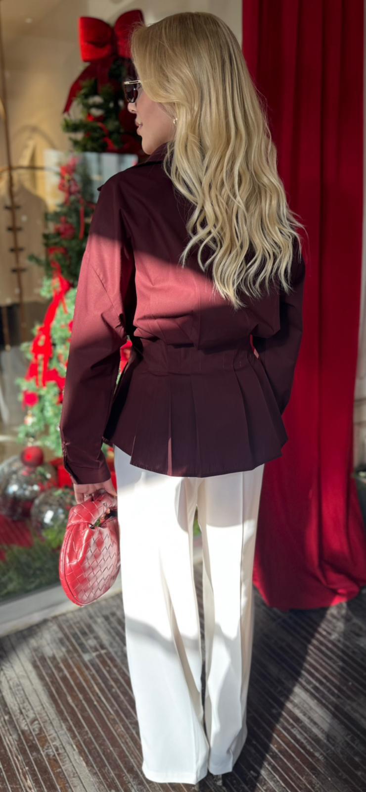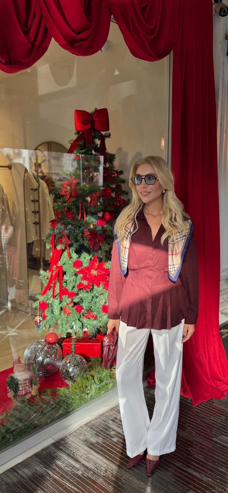 BORDO PİLİLİ POPLİN GÖMLEK (ST01610-BORDO-S)