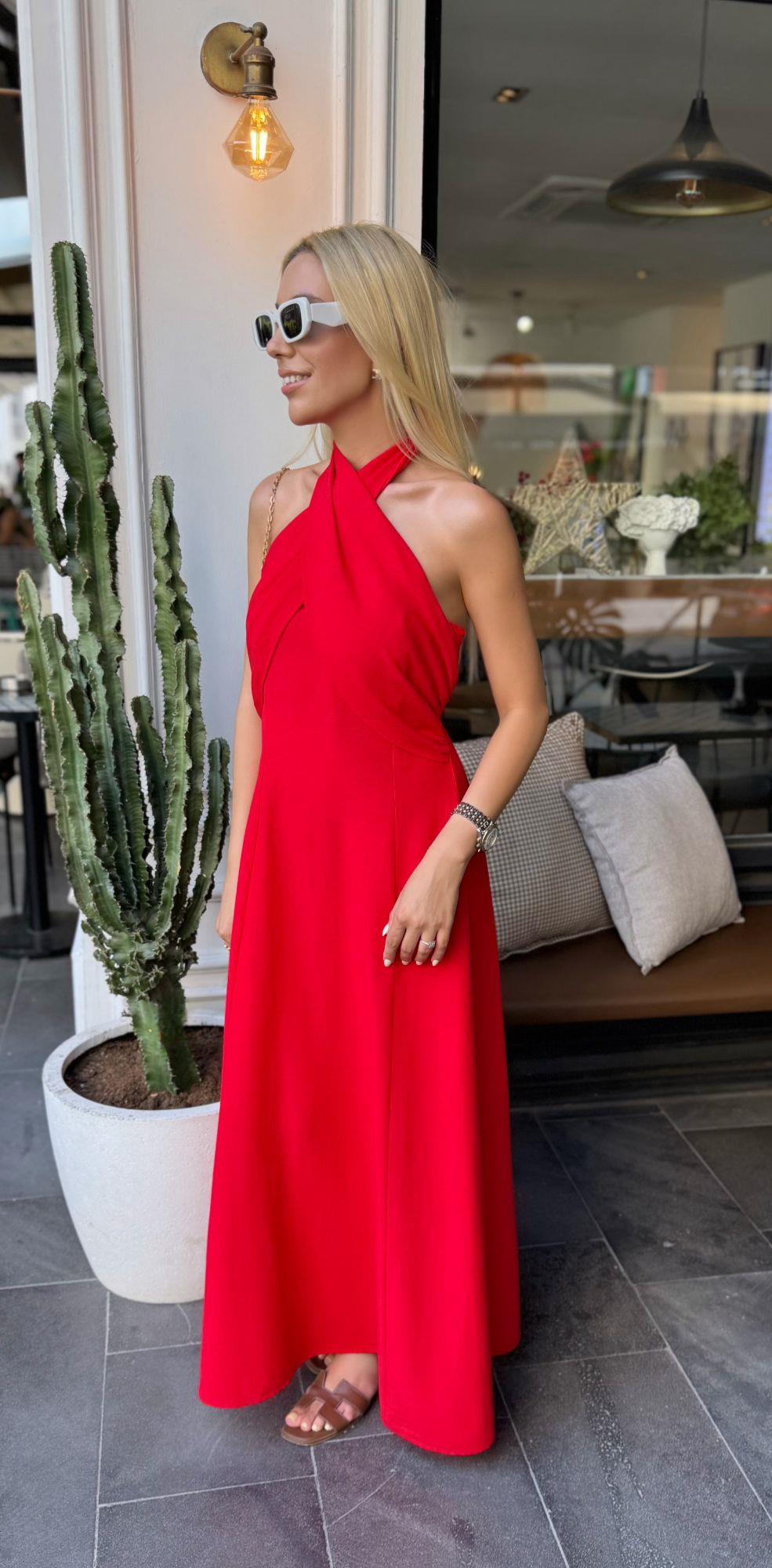 BOYUNDAN BAĞLAMALI ÇAN ELBİSE KIRMIZI (ST01431-KIRMIZI-S)