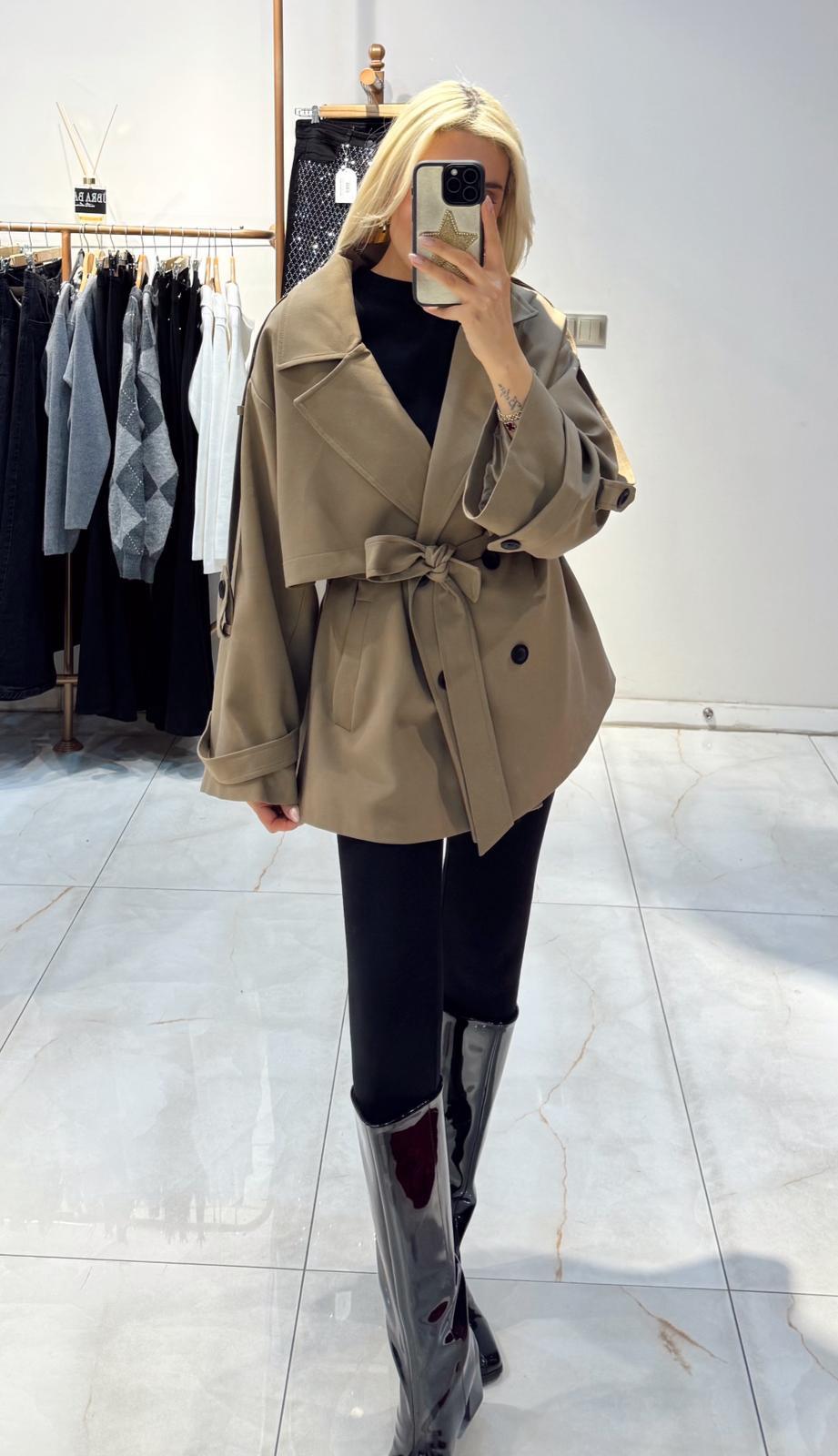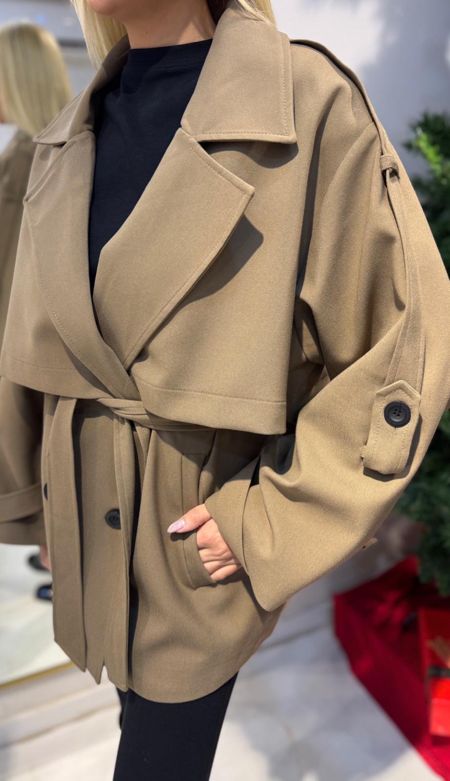 CAMEL PREMİUM OVERSİZE APOLETLİ KISA TRENÇKOT (ST01704-CAMEL-STD)