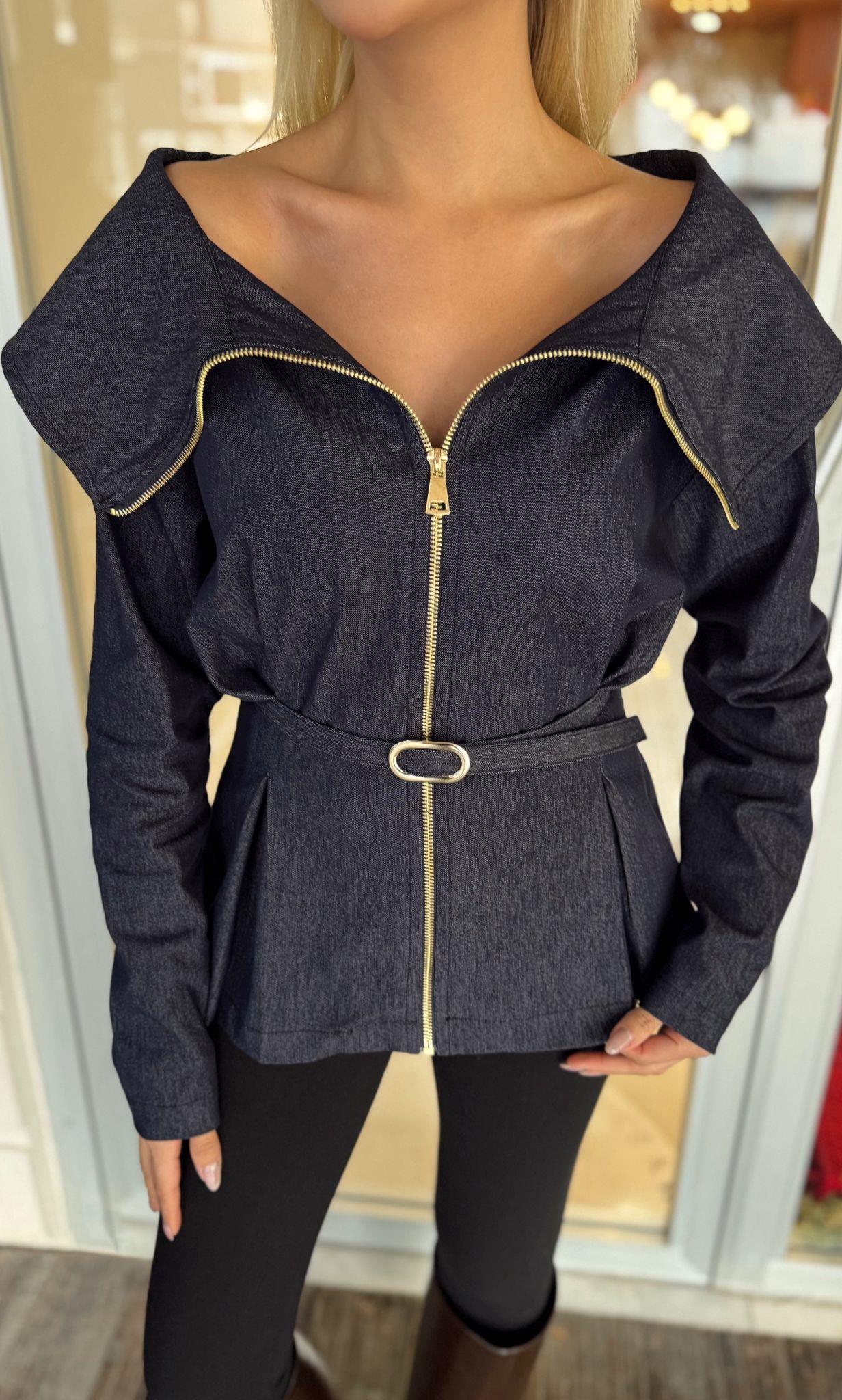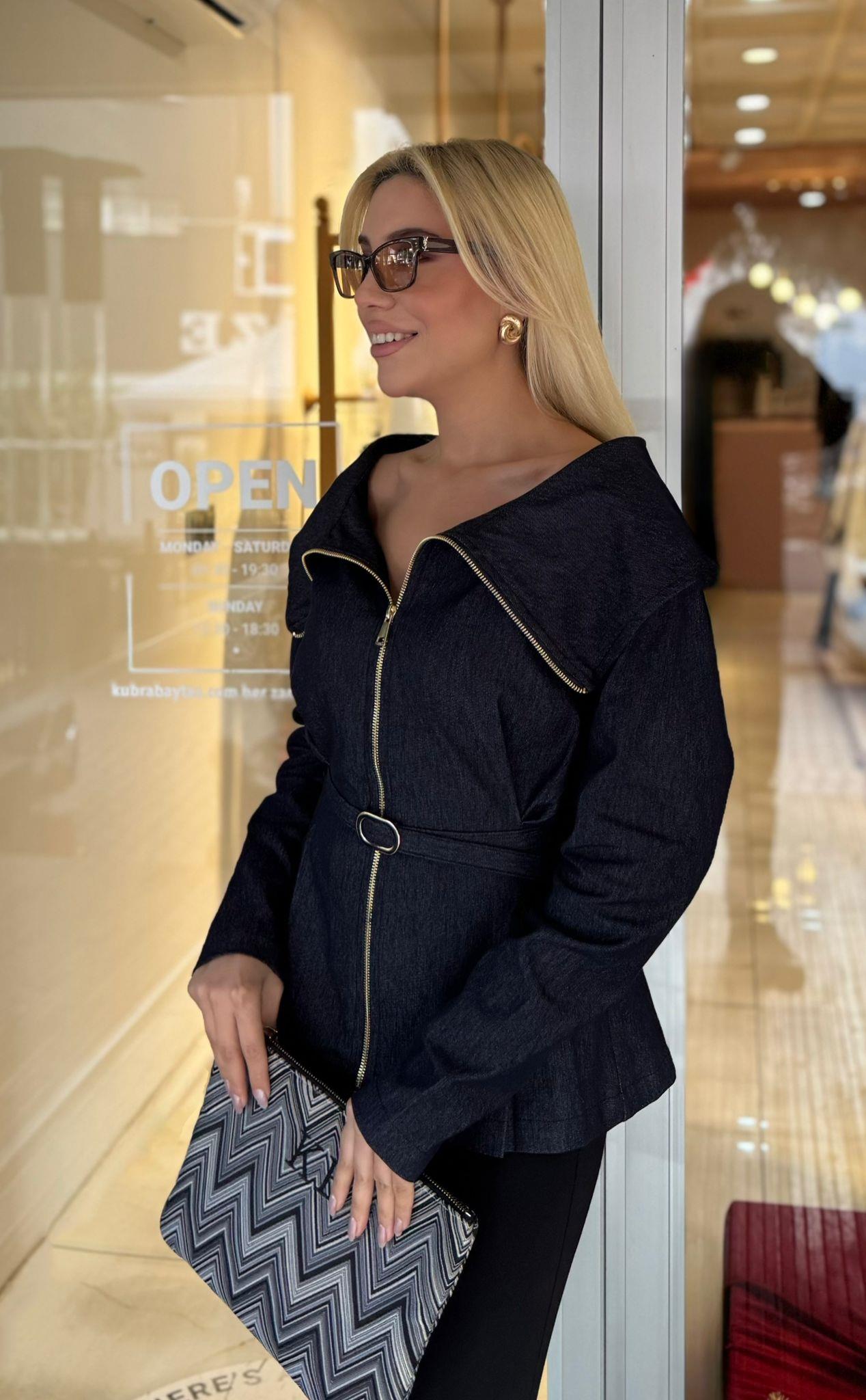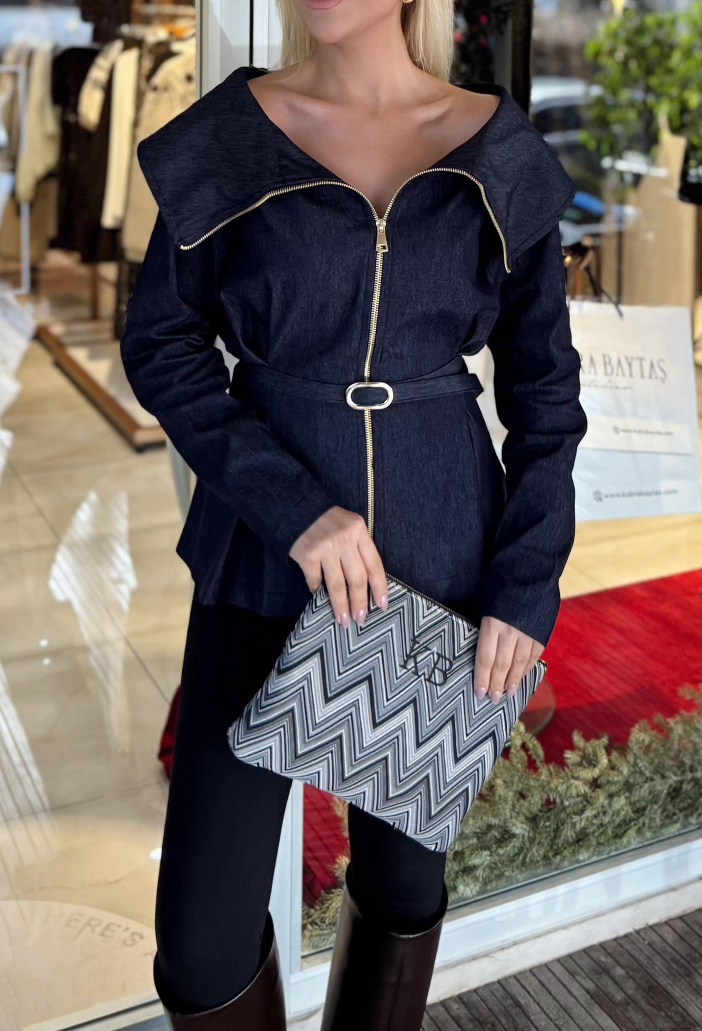 DENİM KEMERLİ GÖMLEK (ST01709-LACİVERT-S)