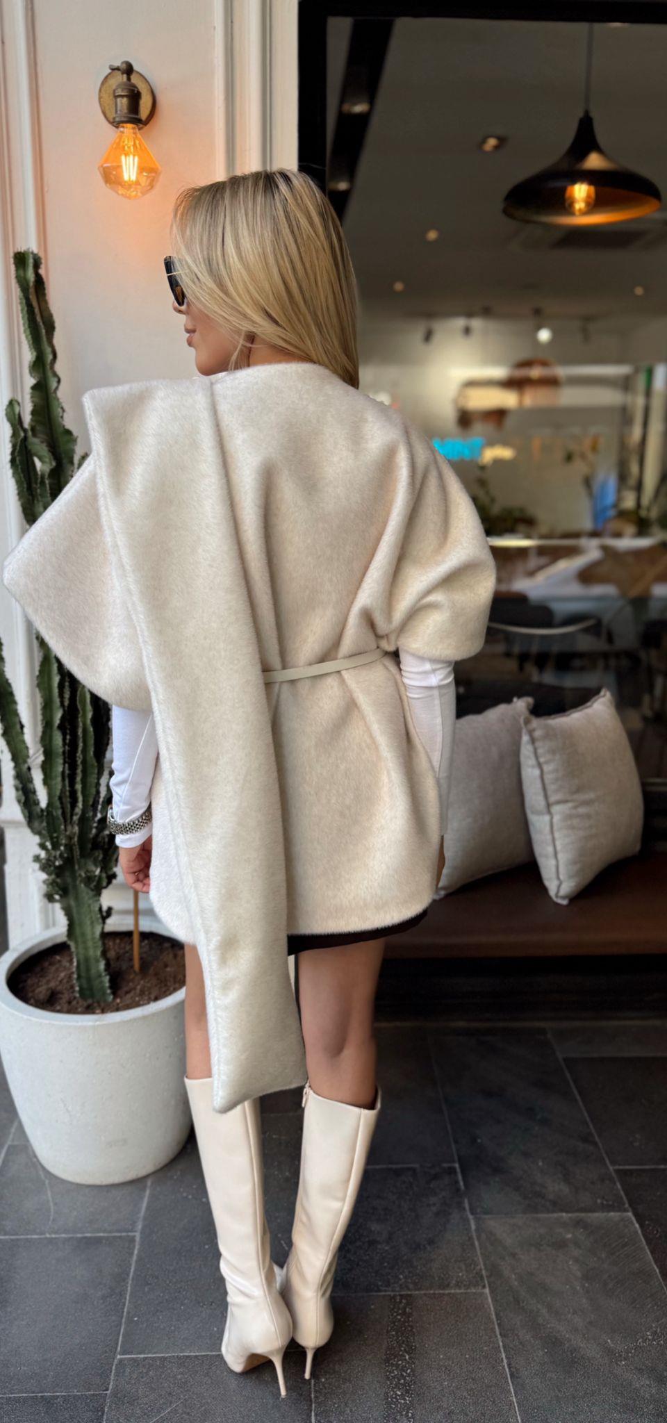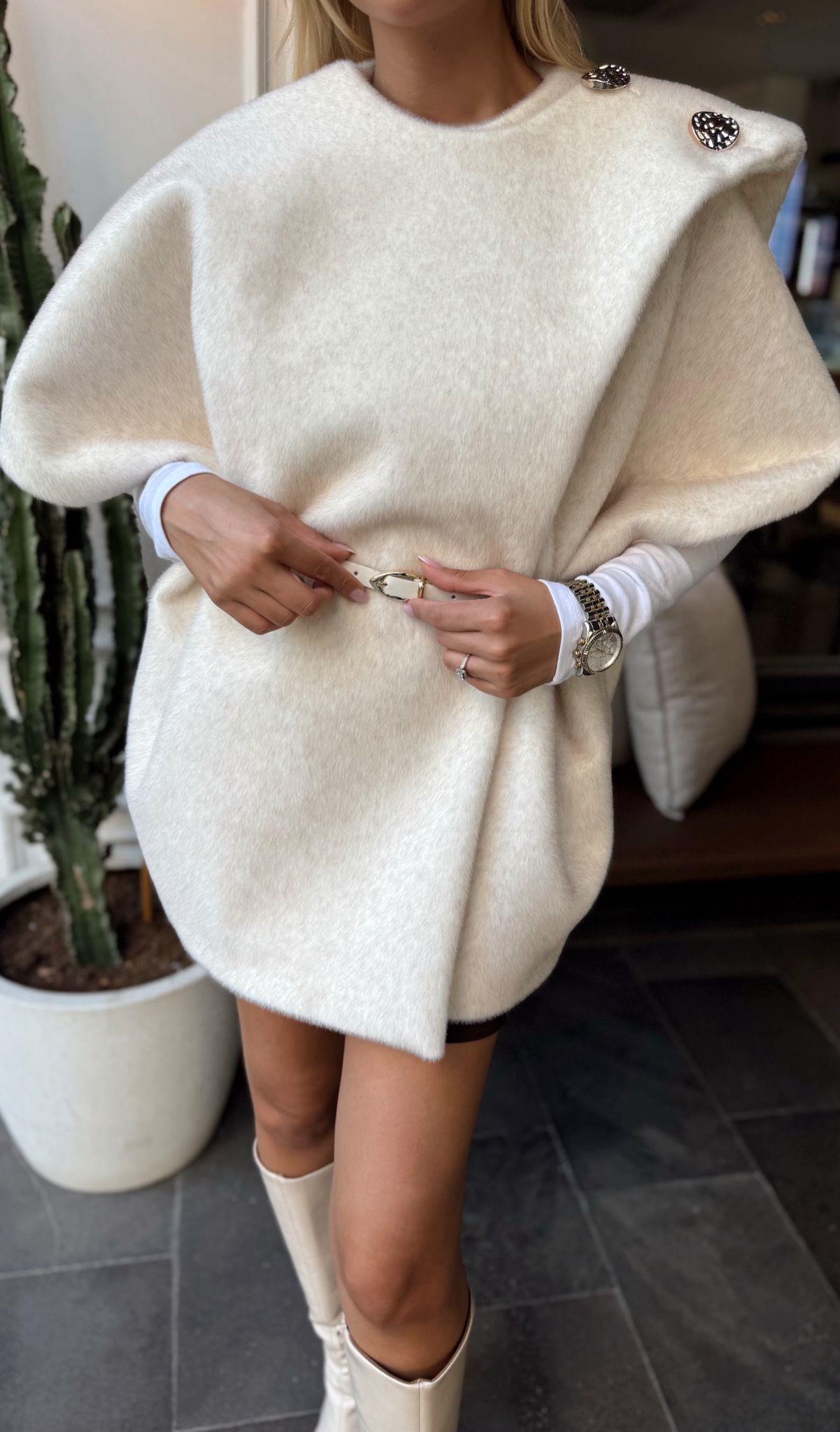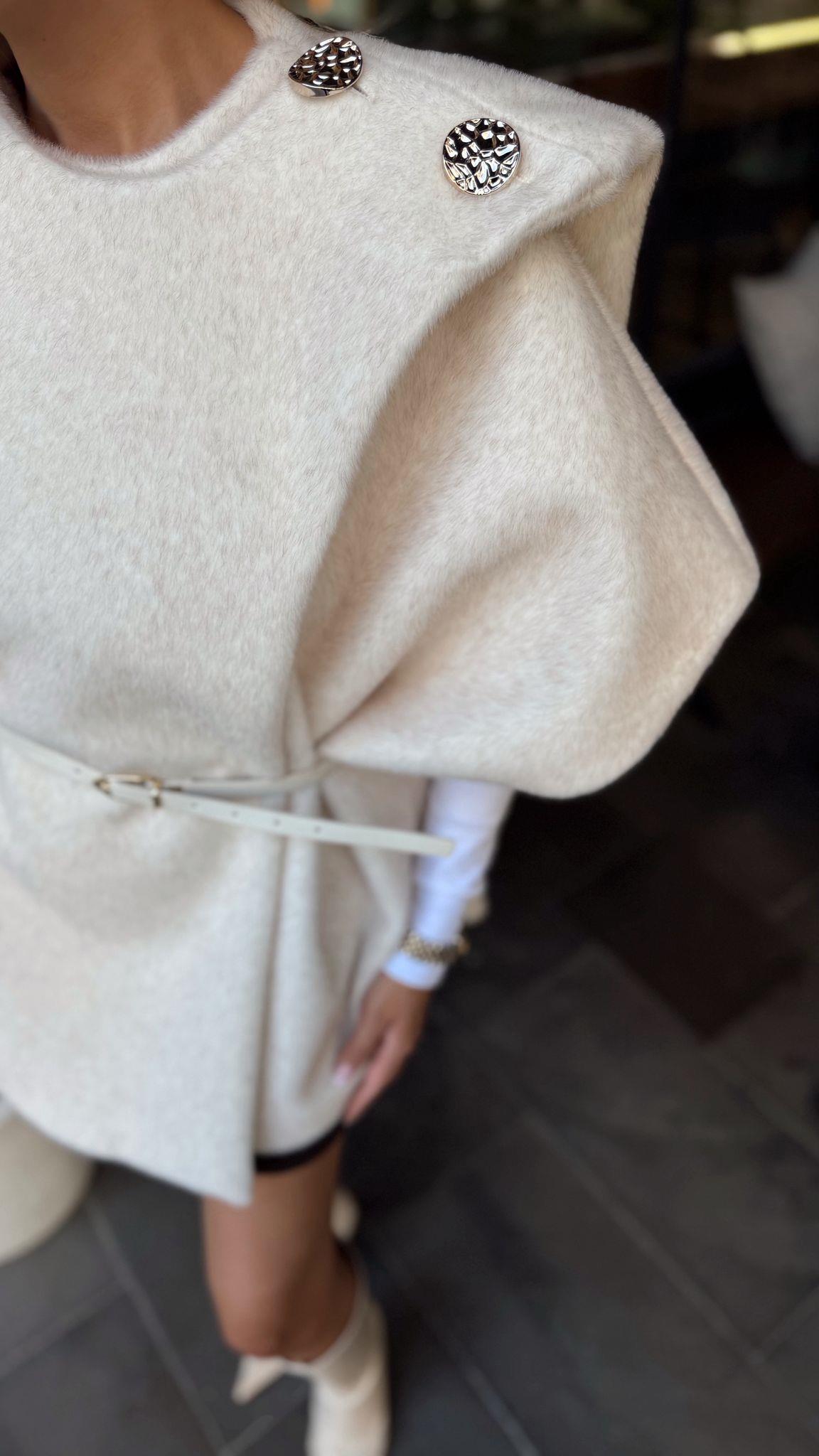 EKRU APOLETLİ KEMERLİ KÜRK PANÇO (ST01530-EKRU-STD)