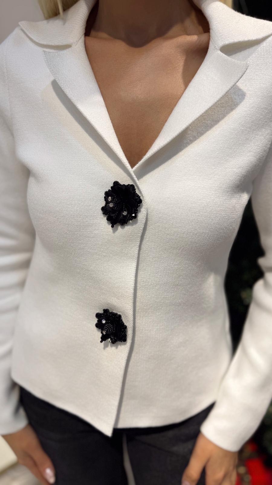 EKRU ÇİÇEK DÜĞMELİ TRİKO HIRKA CEKET (ST01705-EKRU-STD)