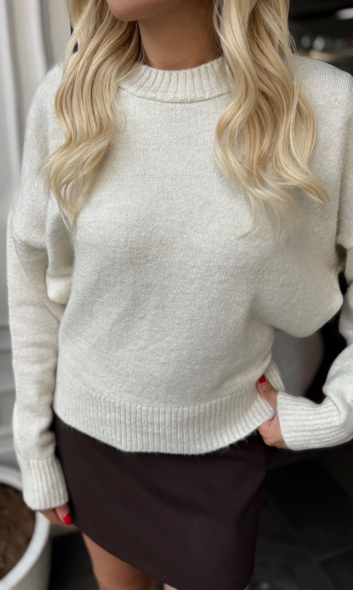 EKRU DEKORATİF YAKA TRİKO KAZAK (ST01519-EKRU-STD)