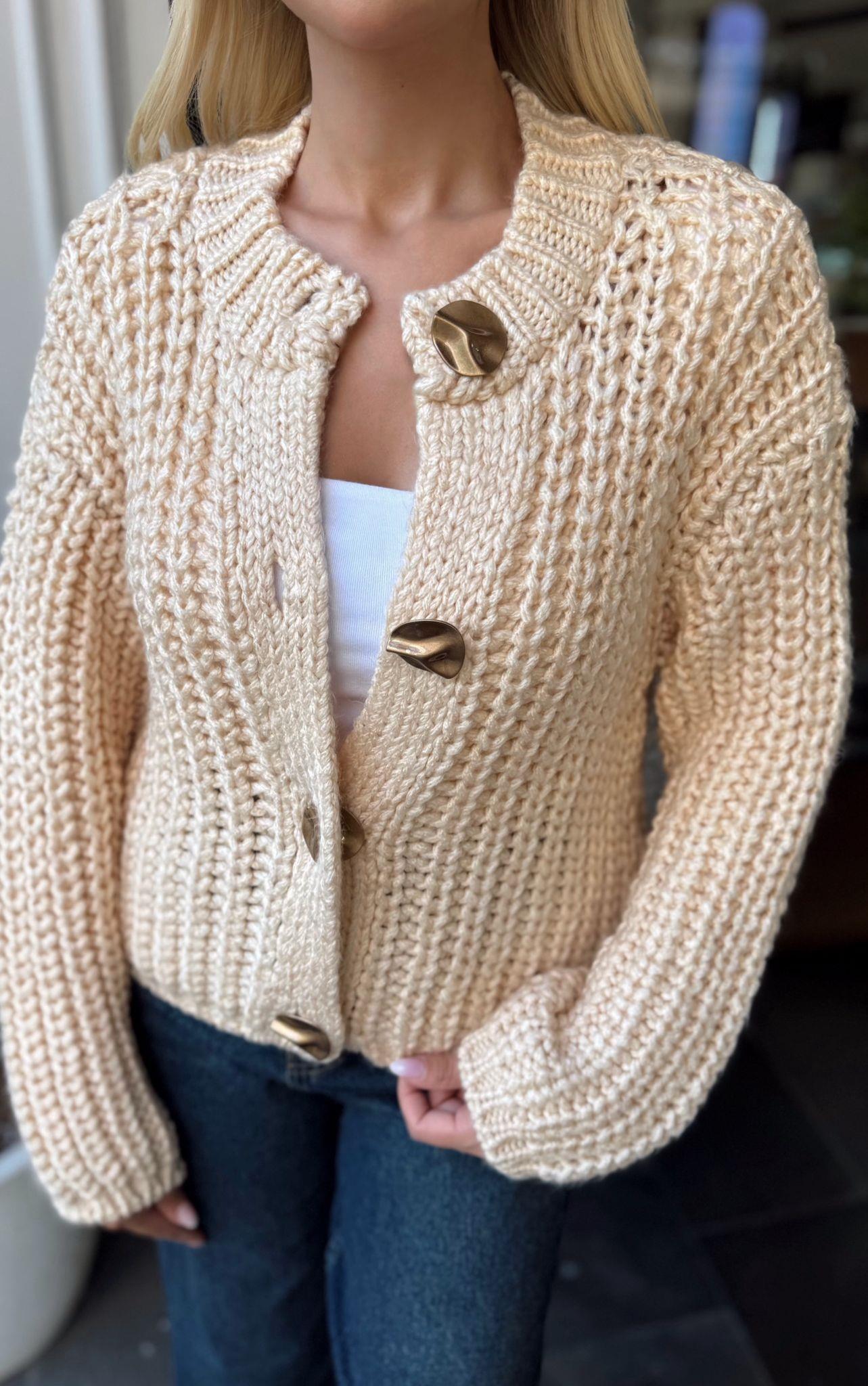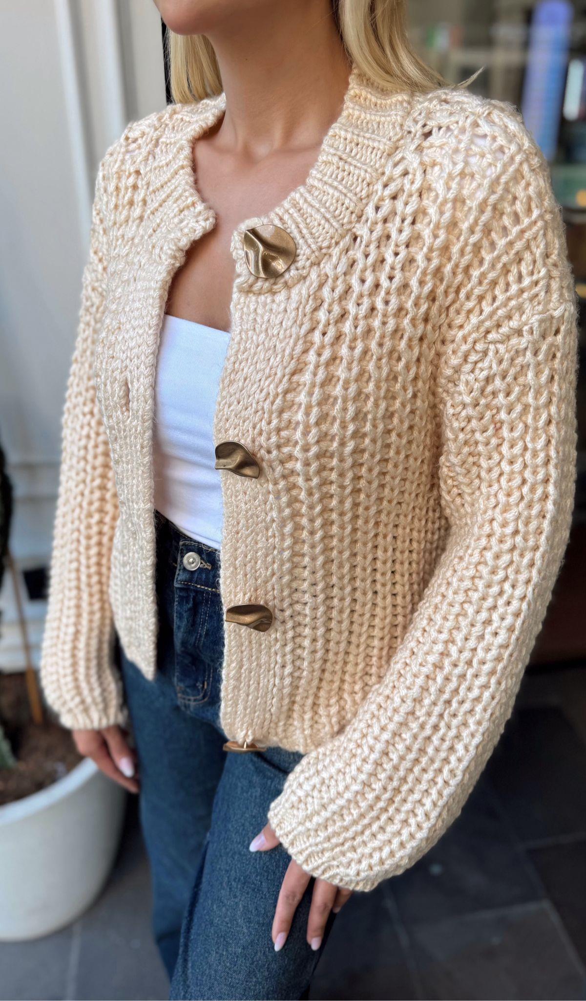 EKRU YUMUŞAK DOKULU DÜĞMELİ TRİKO HIRKA (ST01490-EKRU-STD)