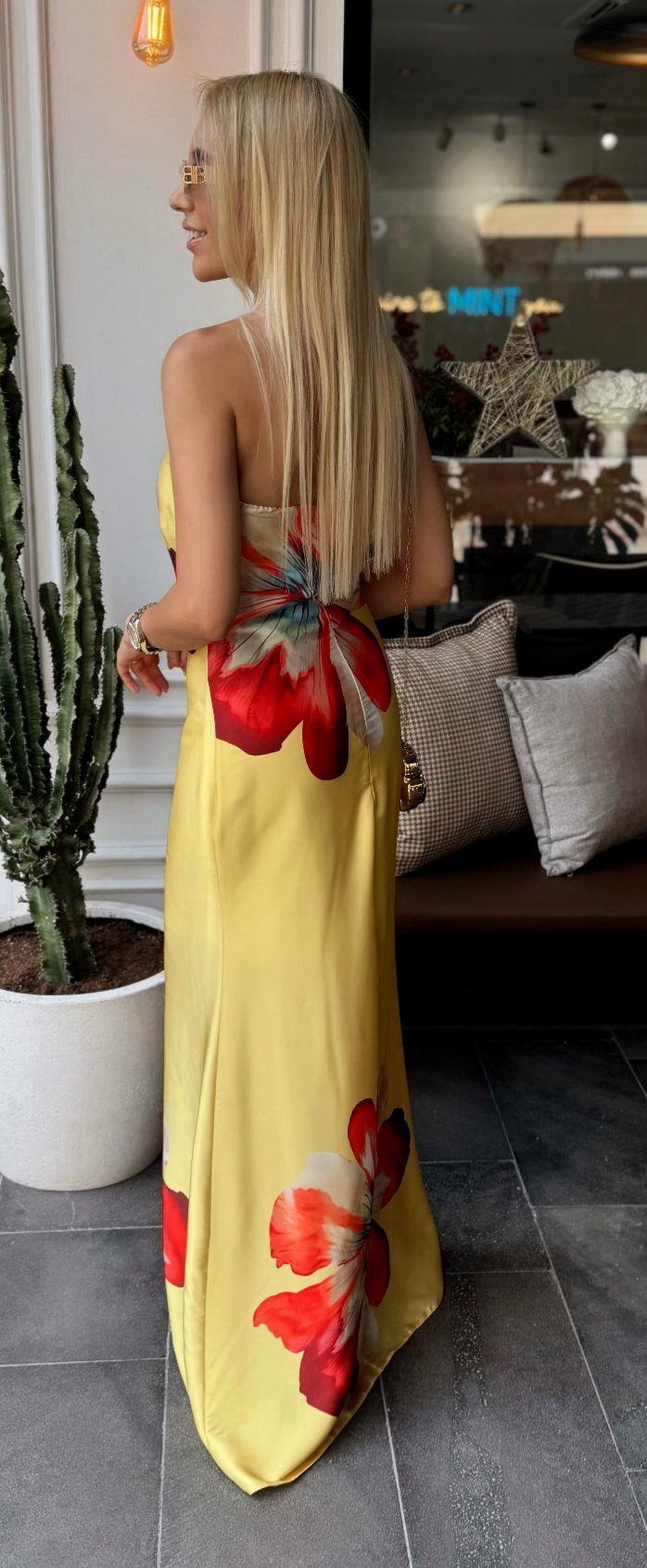 GRETTA STRAPLEZ SATEN ELBİSE SARI (ST01426-SARI-S)