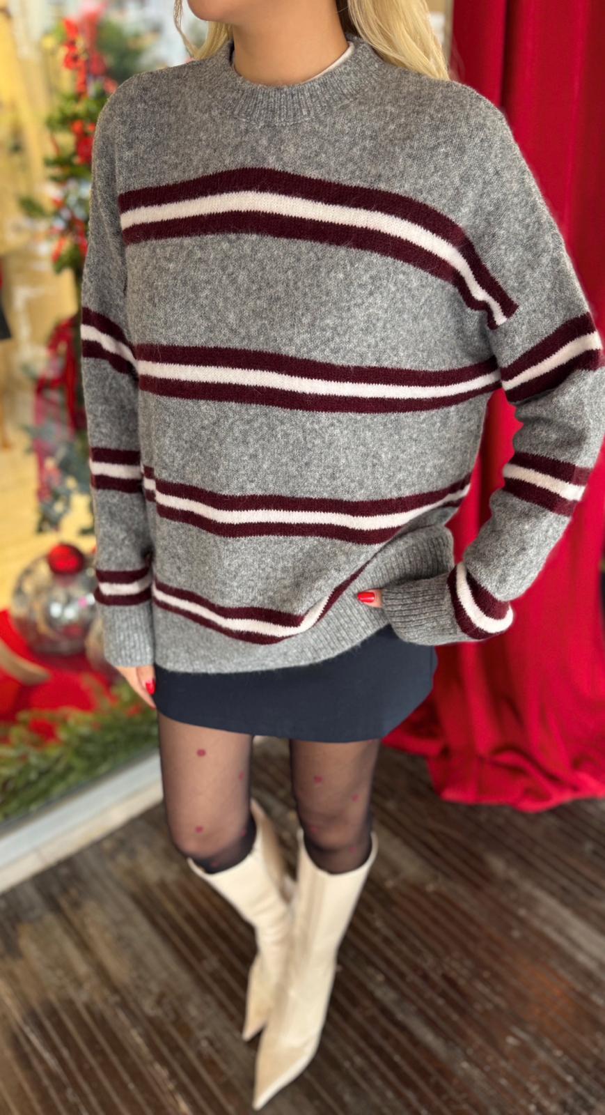 GRİ ŞERİT GEÇMELİ KAZAK (ST01650-GRİ-STD)