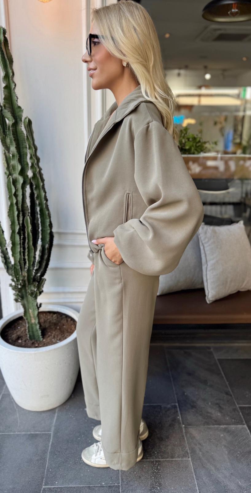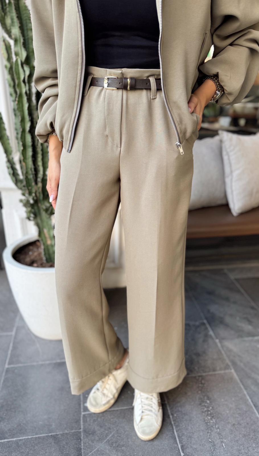 HAKİ BOMBER CEKET KEMERLİ PANTOLON TAKIM (ST01525-HAKİ-S)