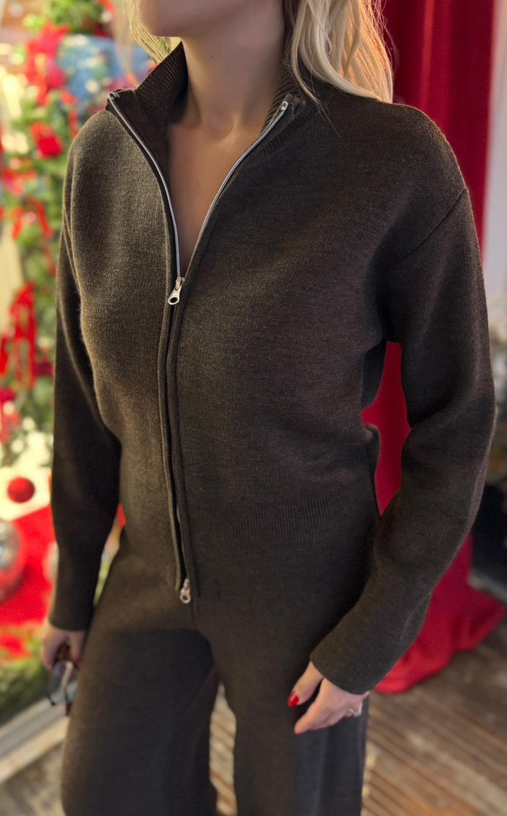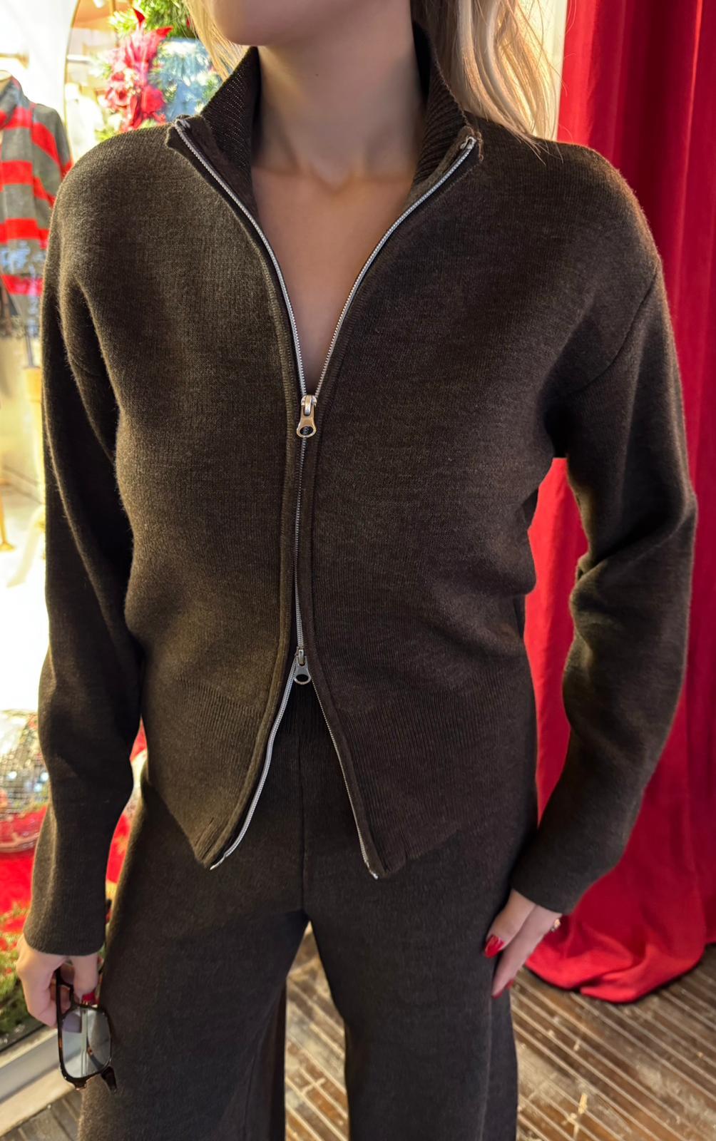 KAHVE ÇİFT FERMUARLI HIRKA (ST01647-KAHVE-STD)