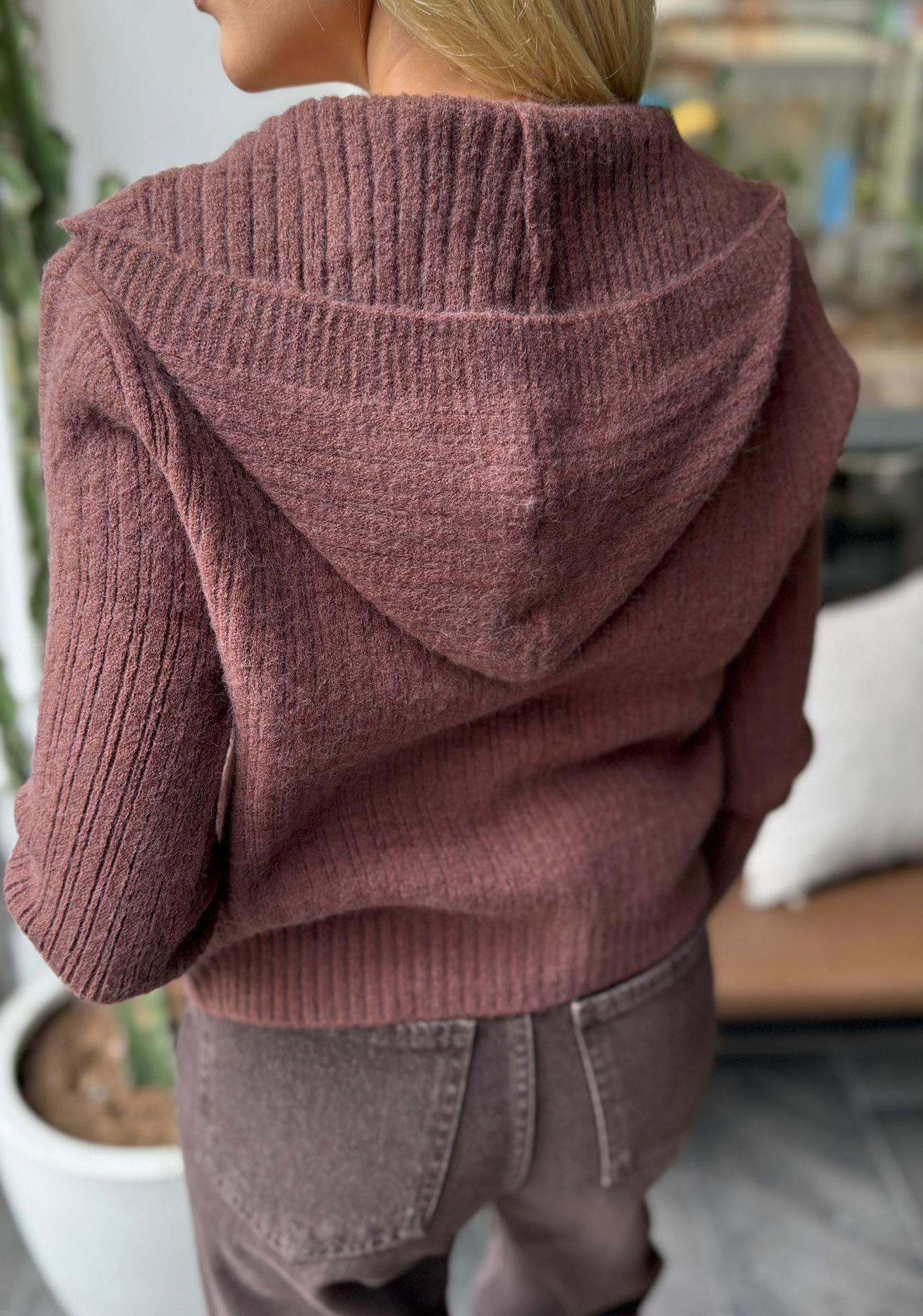 KAHVE ÇİFT FERMUARLI KAPÜŞONLU HIRKA (ST01583-KAHVE-STD)