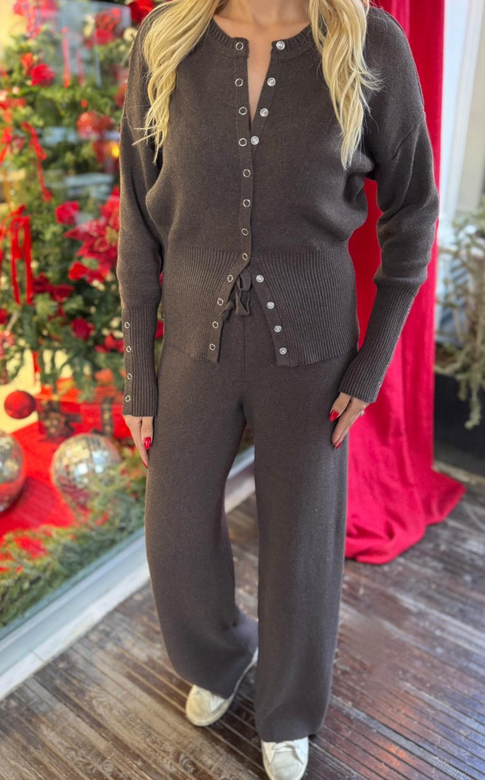 KAHVE ÇITÇIT DETAYLI ÇELİK TRİKO TAKIM (ST01640-KAHVE-STD)