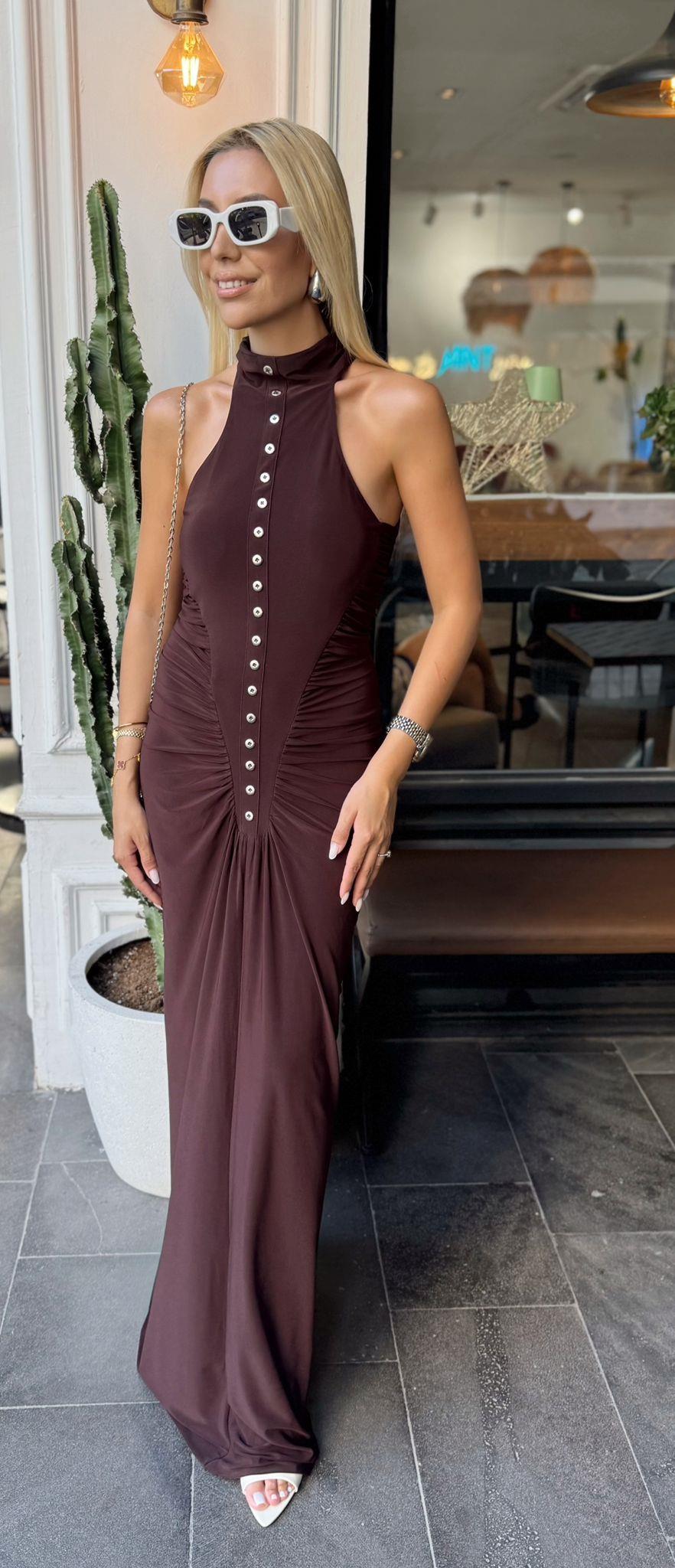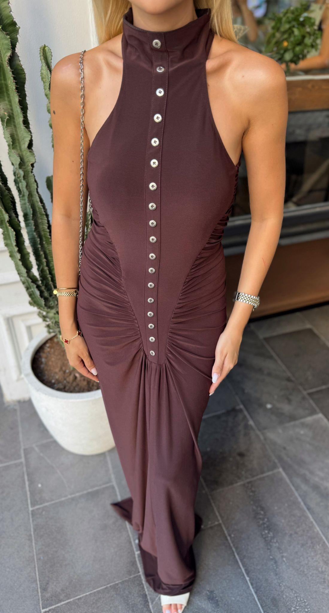 KAHVE ÇOK DÜĞME DETAYLI ELBİSE (ST01478-KAHVE-S)