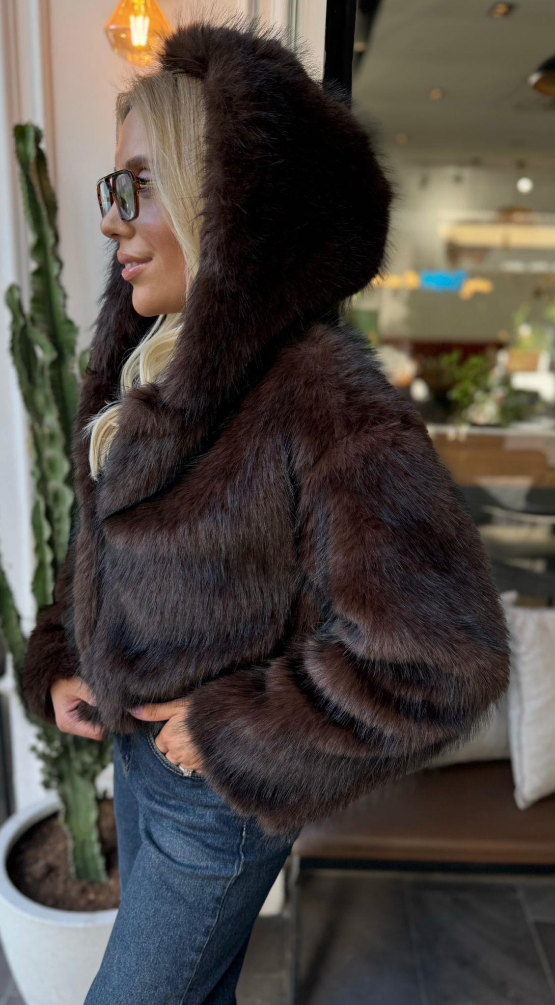 KAHVE MARKA MODEL KAPŞONLU KÜRK (ST01524-KAHVE-S)