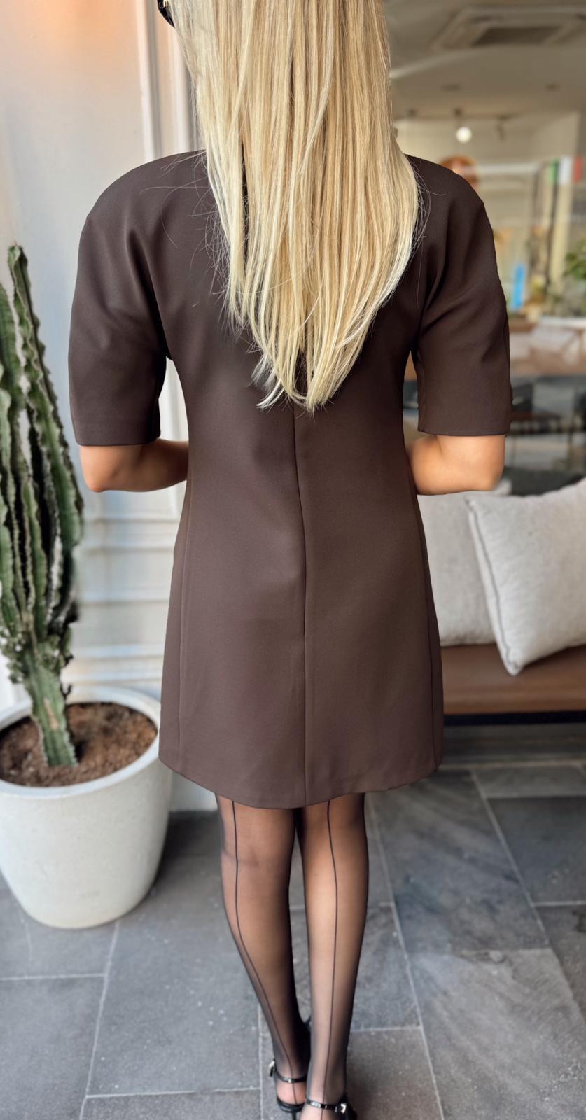 KAHVE MARKA MODEL ZR KISA BALON KOLLU ELBİSE (ST01586-KAHVE-S)