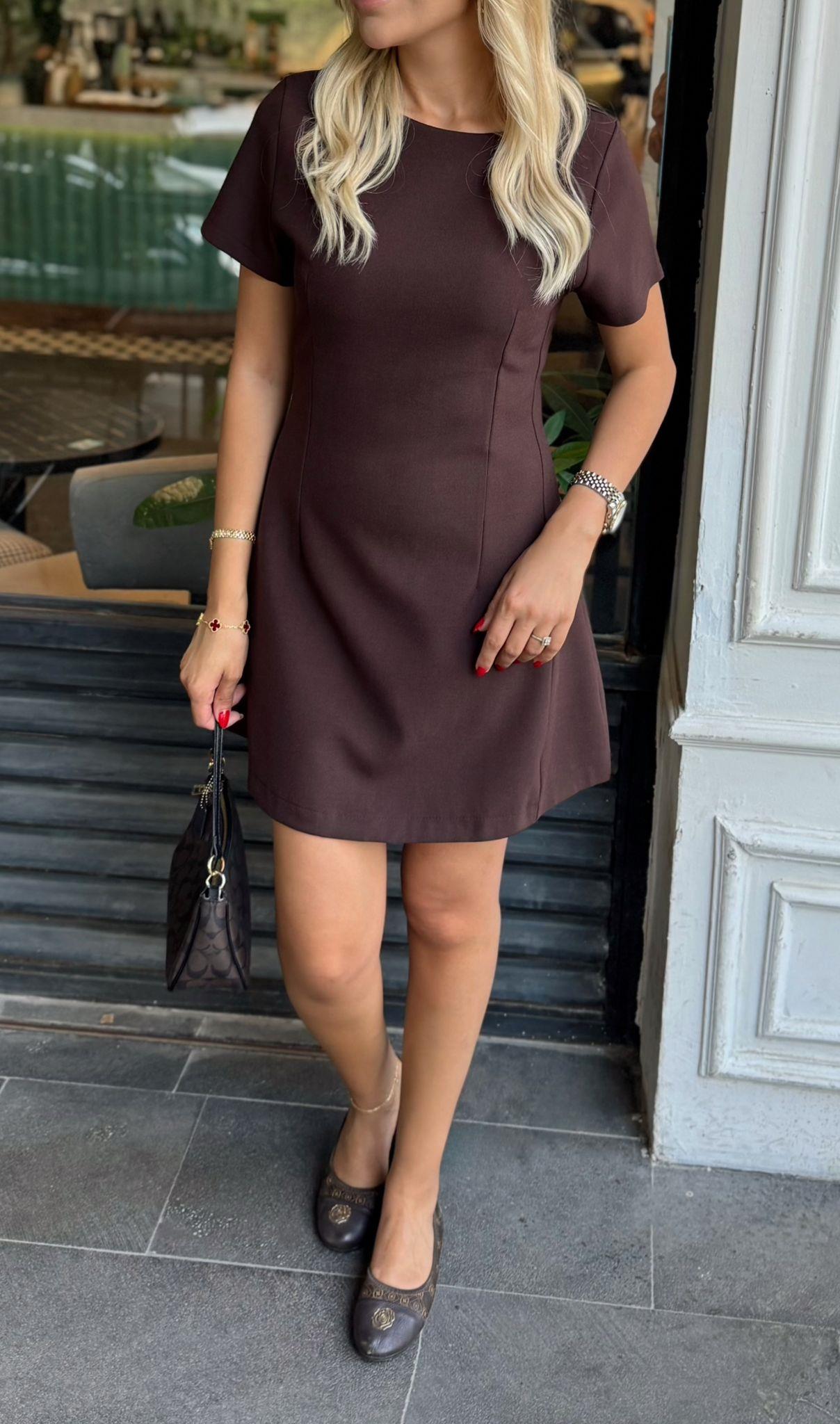 KAHVE ORJ MARKA MASSİ KISA ELBİSE (ST01514-KAHVE-S)