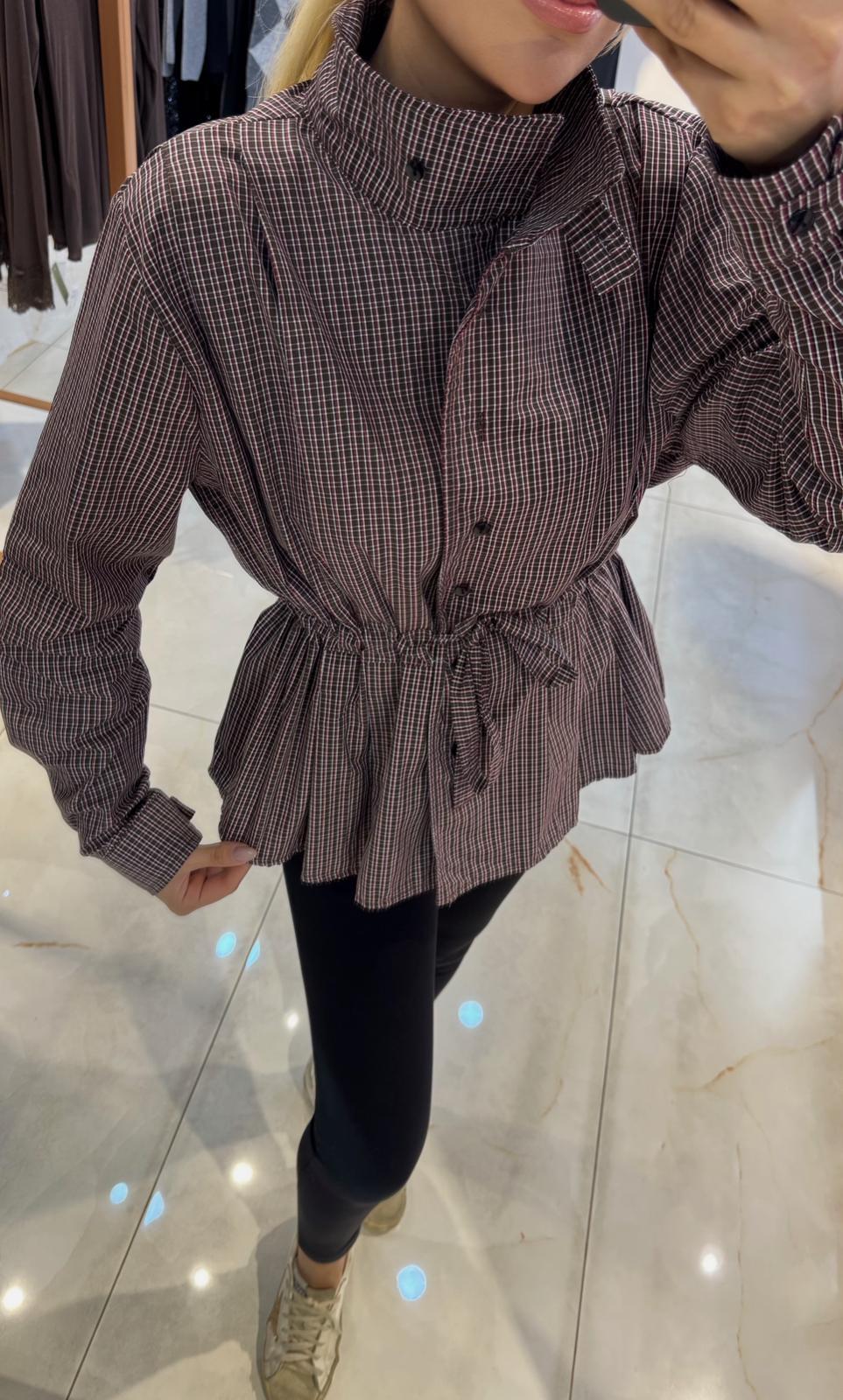 KAHVE PÖTİKARELİ BÜZGÜ DETAYLI GÖMLEK (ST01717-KAHVE-S)