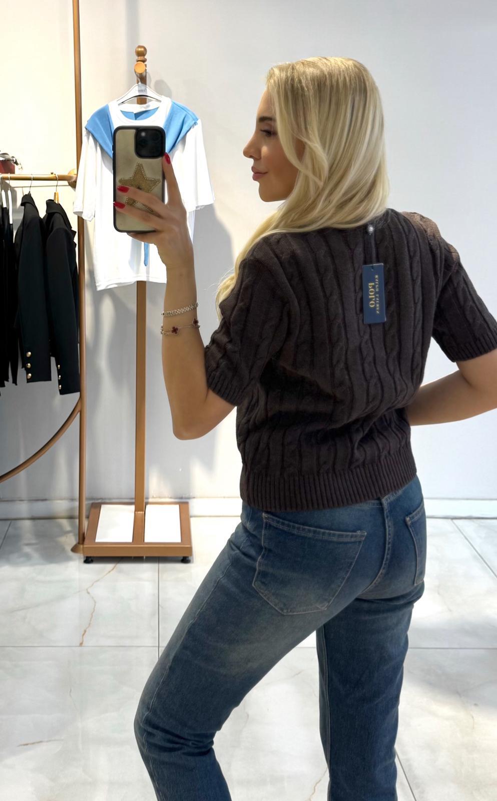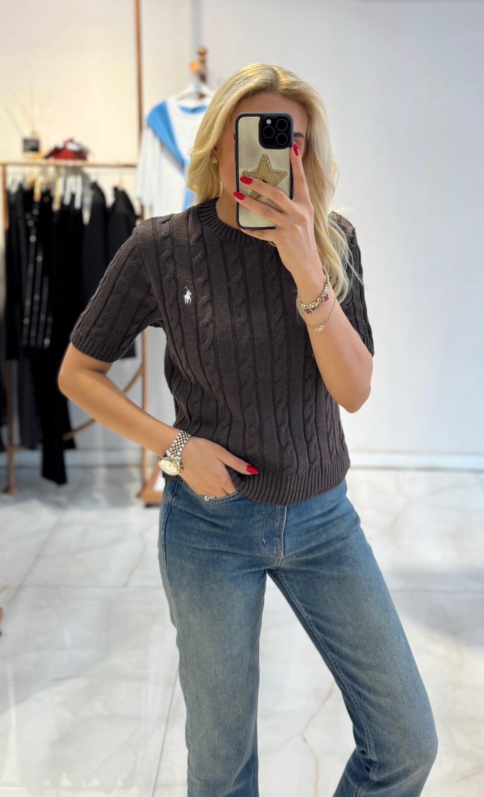 KAHVE RAİKA KISA KOL TRİKO (ST01735-KAHVE-STD)