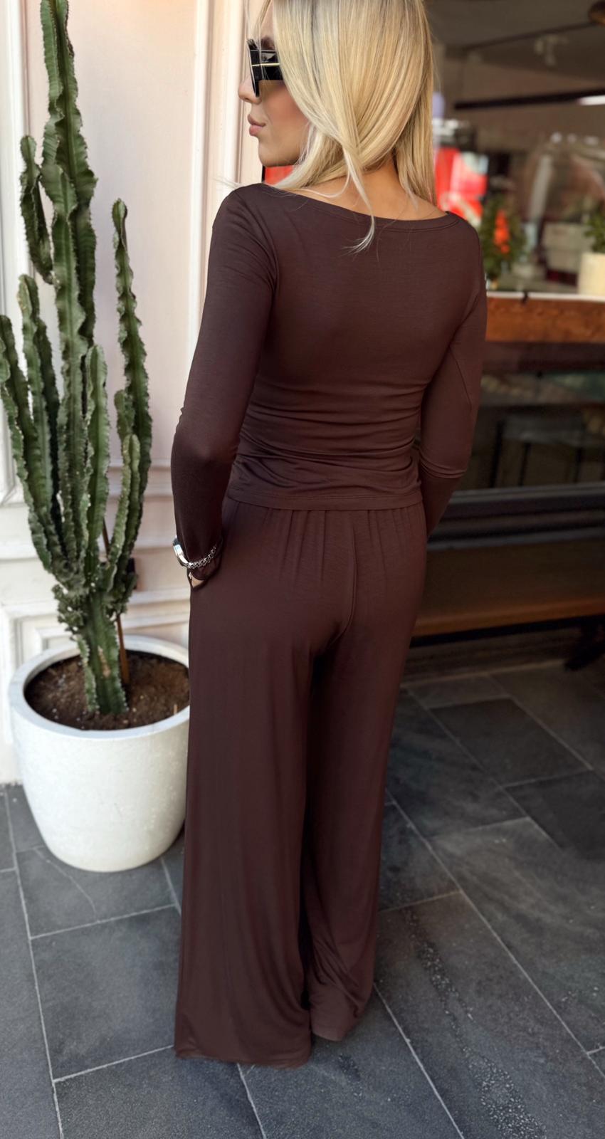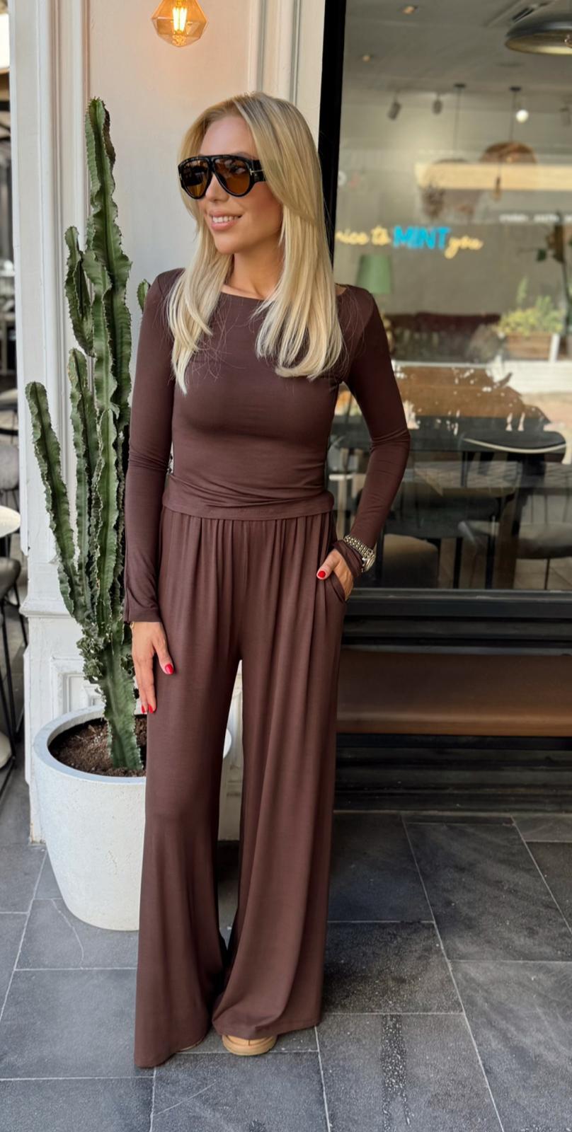 KAHVE UZUN KOLLU İKİLİ DÜZ TAKIM (ST01493-KAHVE-S)