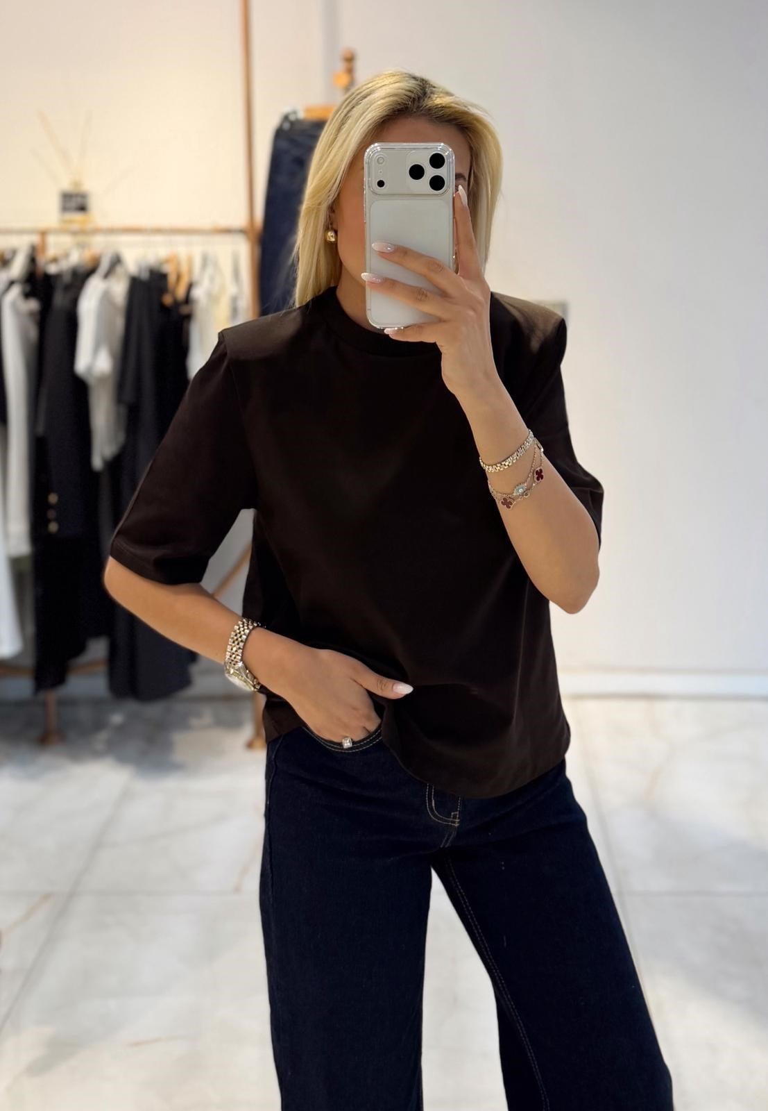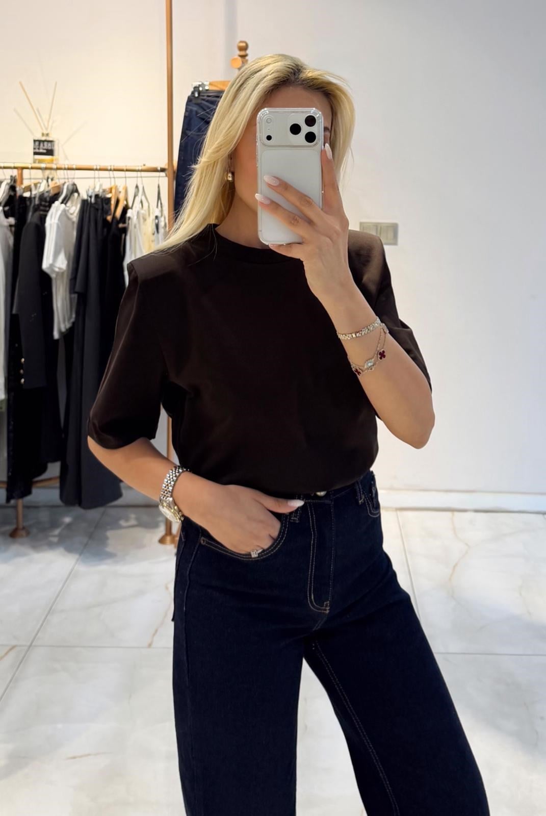 KAHVE VATKALI BASİC T-SHİRT (ST01156-KAHVE-S)
