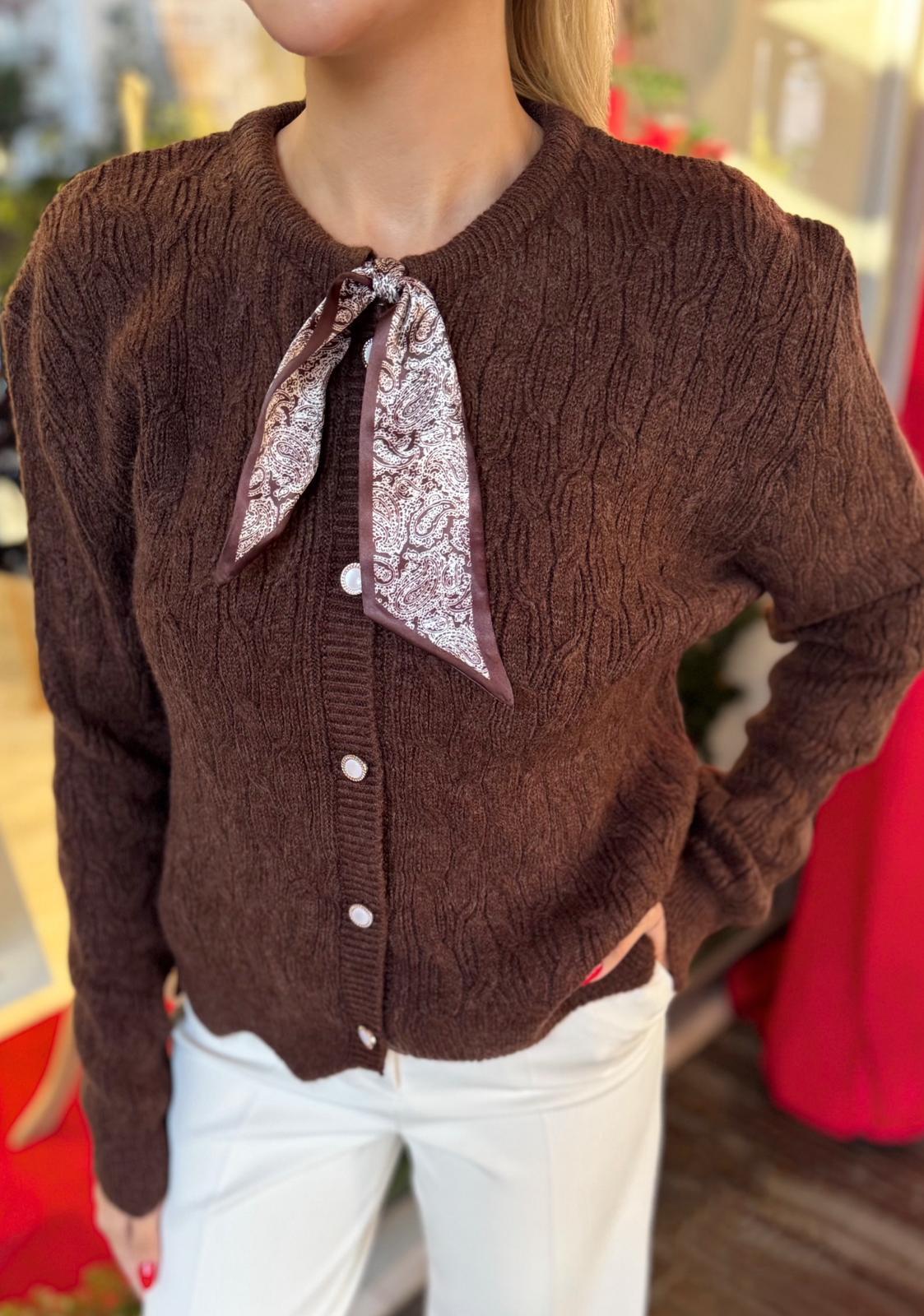 KAHVE YAKASI FULARLI HIRKA (ST01617-KAHVE-STD)
