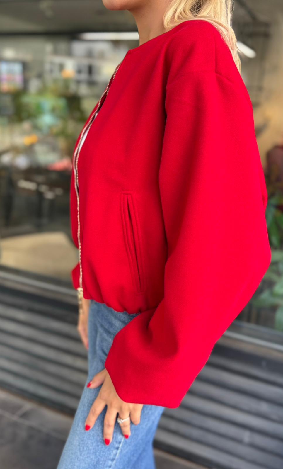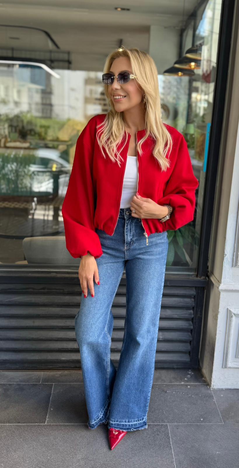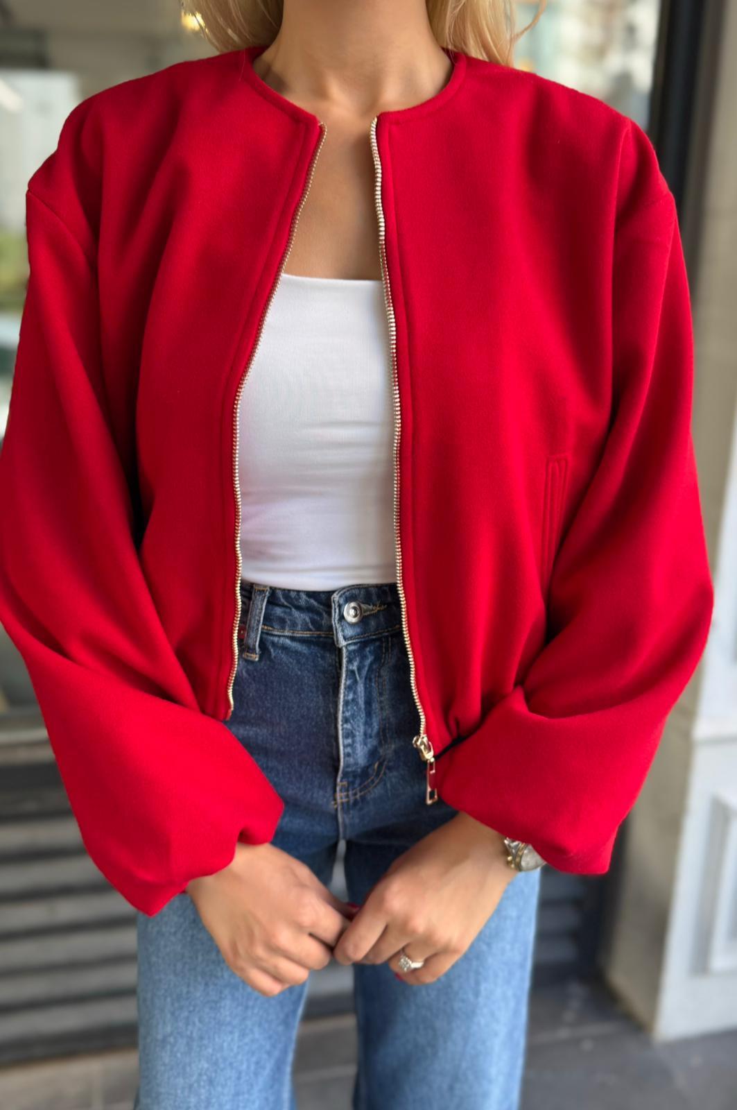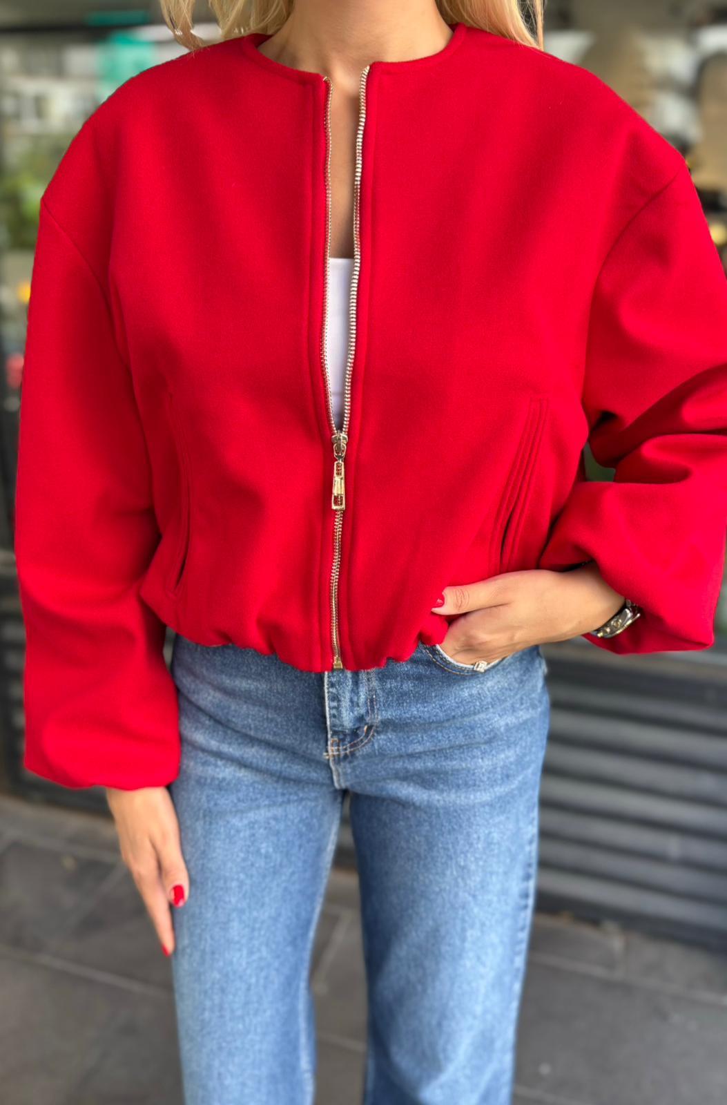 KIRMIZI KAŞE BOMBER CEKET (ST01510-KIRMIZI-S)
