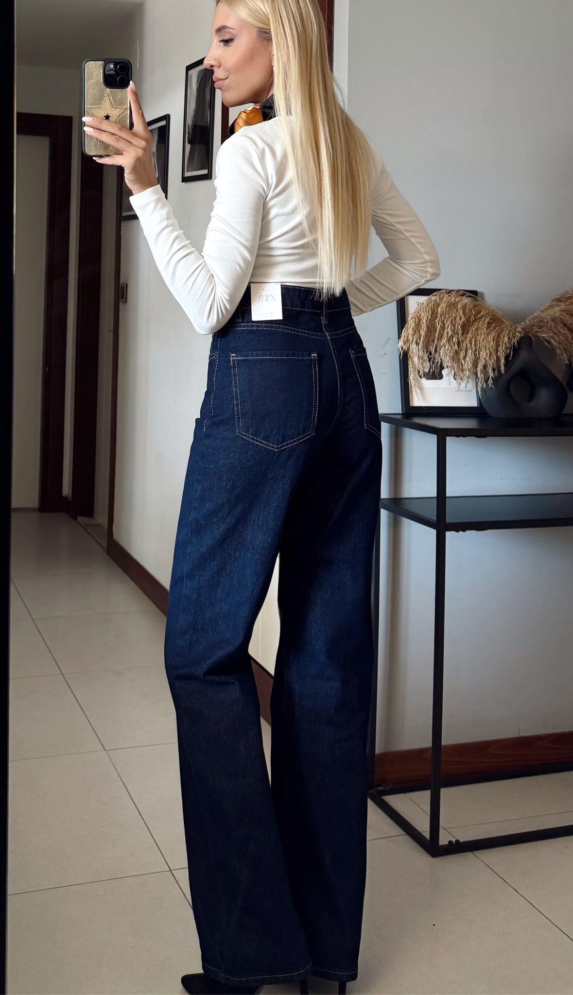 YÜKSEK BEL, ÖNÜ METAL DÜĞMELİ VE FERMUARLI, BEŞ CEPLİ JEAN