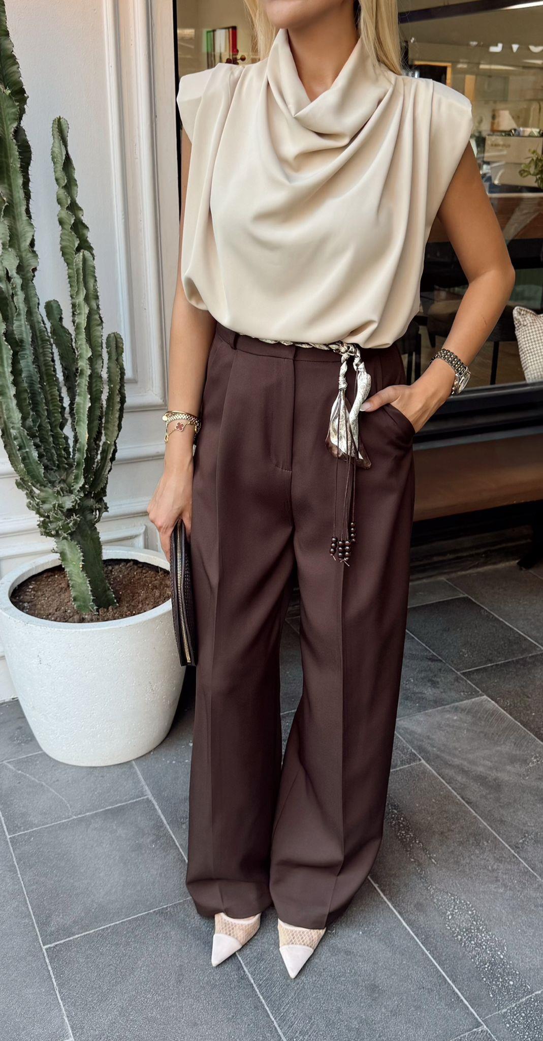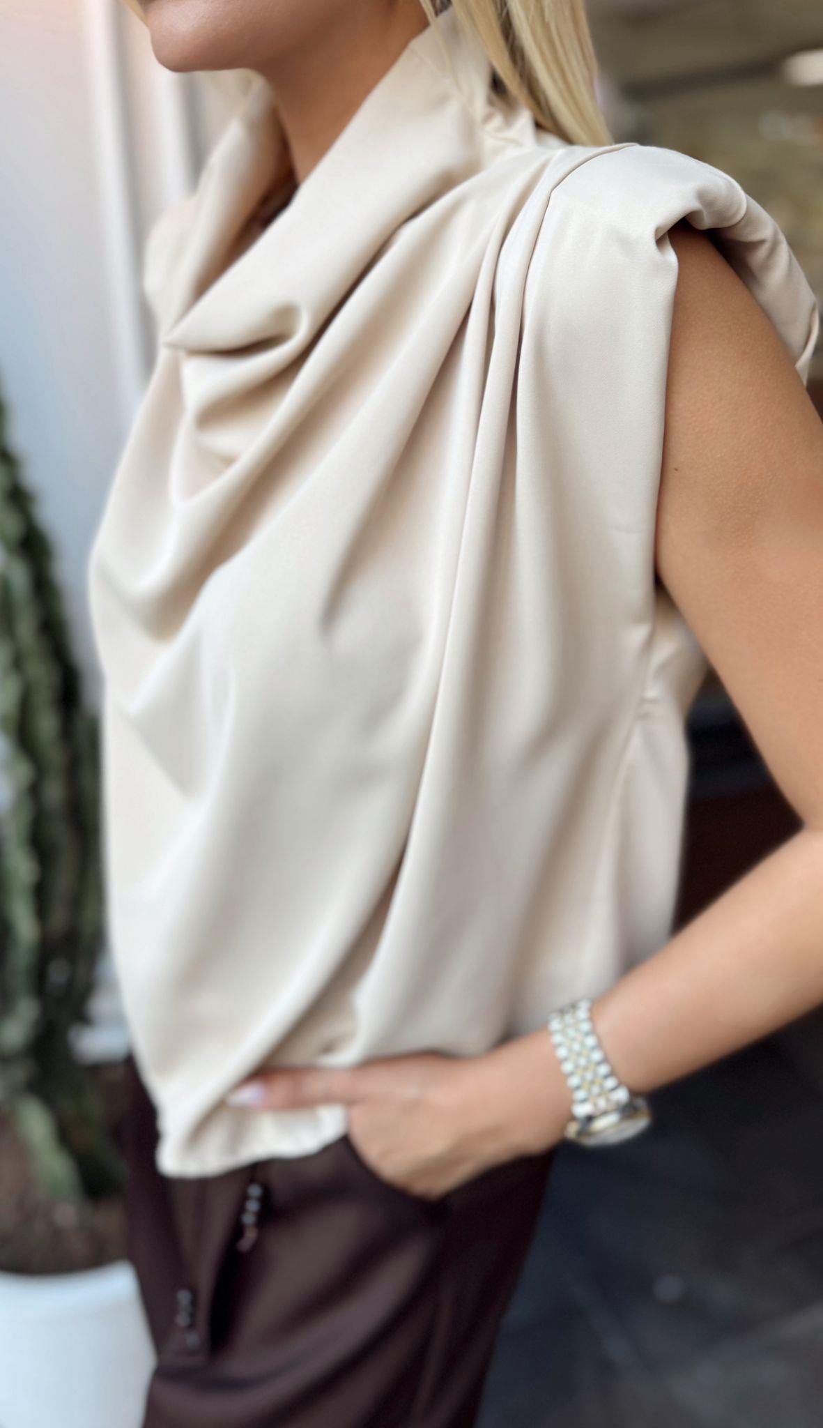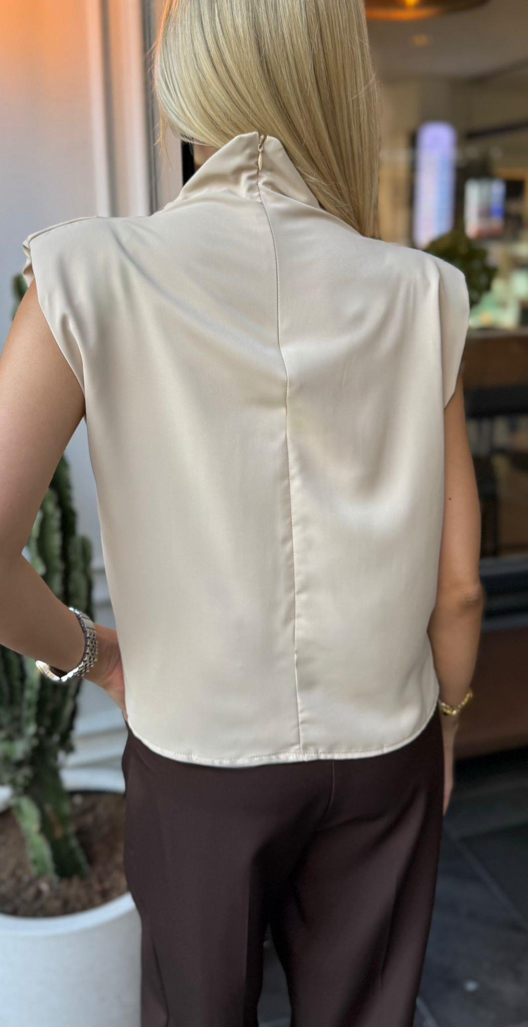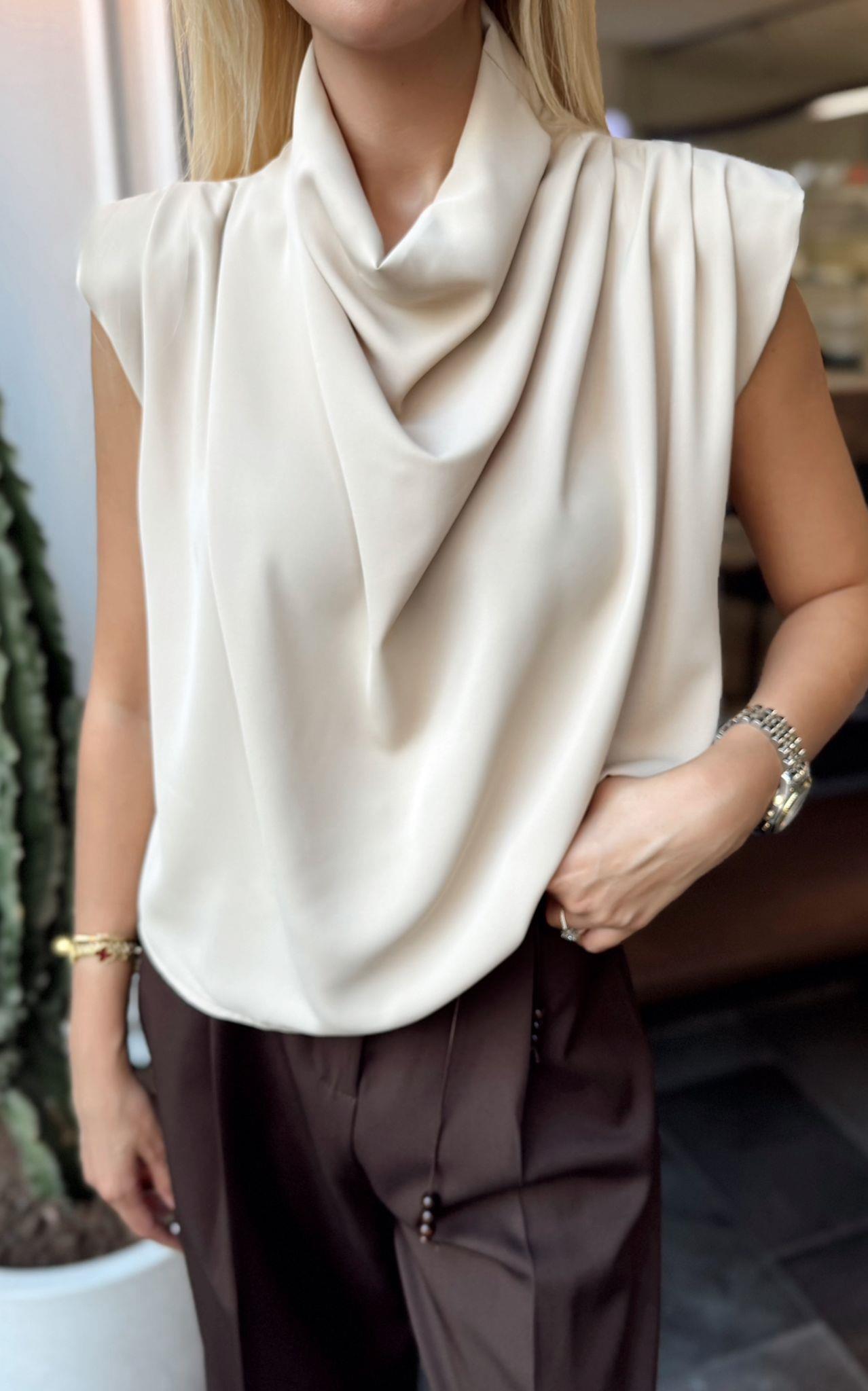 KREM SATEN DEGAJE YAKA KOLSUZ VATKALI BLUZ (ST01467-KREM-S)
