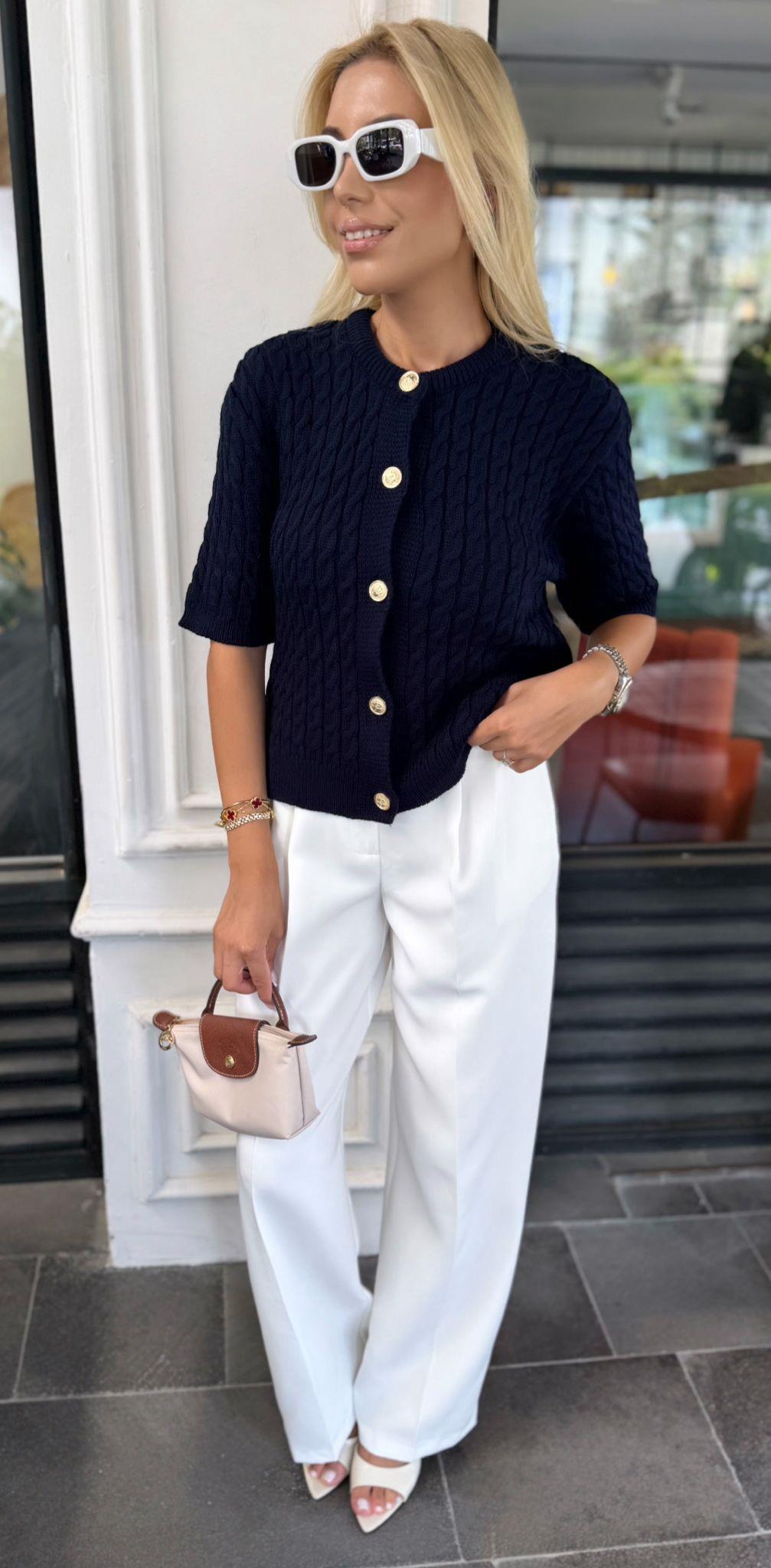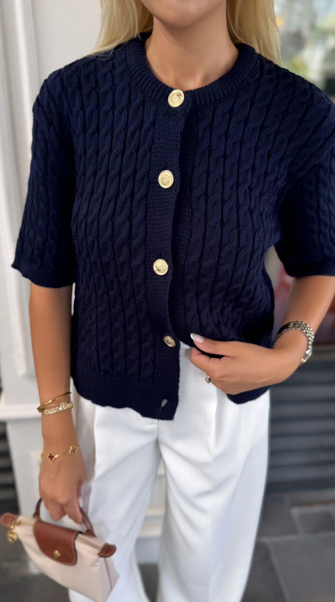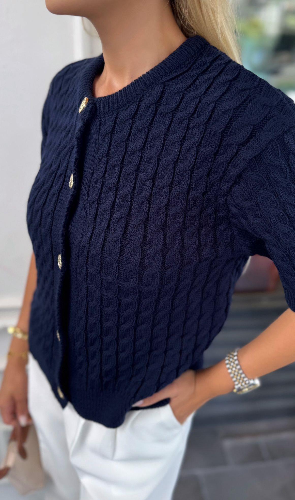 LACİVERT GOLD DÜĞMELİ SAÇ ÖRGÜ TRİKO HIRKA (ST01458-LACİVERT-STD)