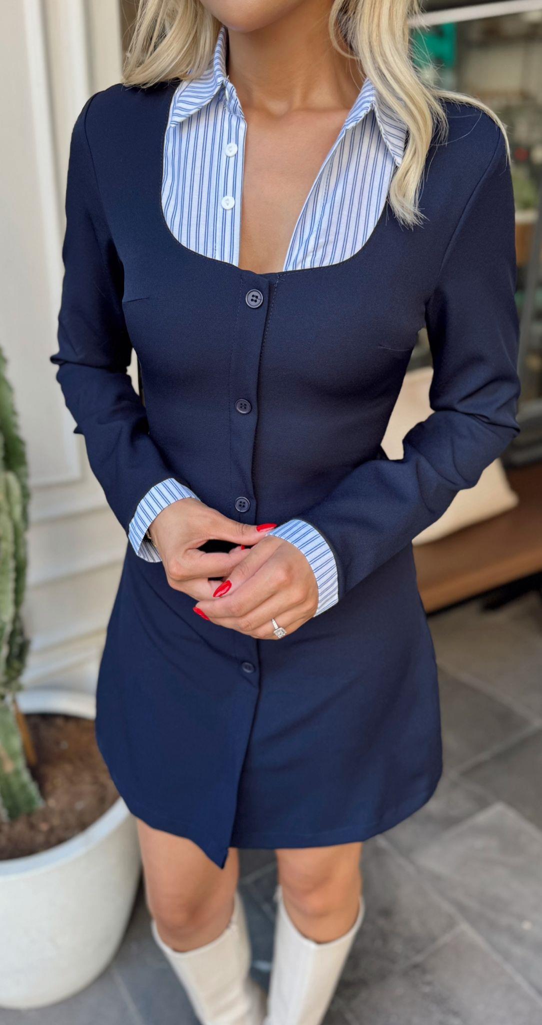 LACİVERT GÖMLEK DETAYLI ELBİSE (ST01506-LACİVERT-S)