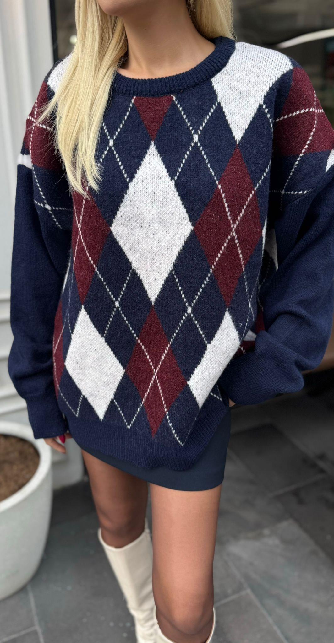 LACİVERT MARKA MODEL BAKLAVA DESENLİ KAZAK (ST01585-LACİVERT-STD)