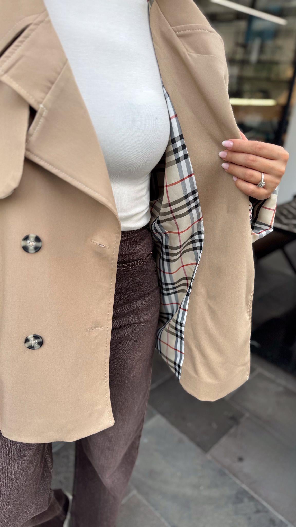 MARKA MODEL KISA İÇİ DESENLİ TRENÇ (ST01546-BEJ-STD)