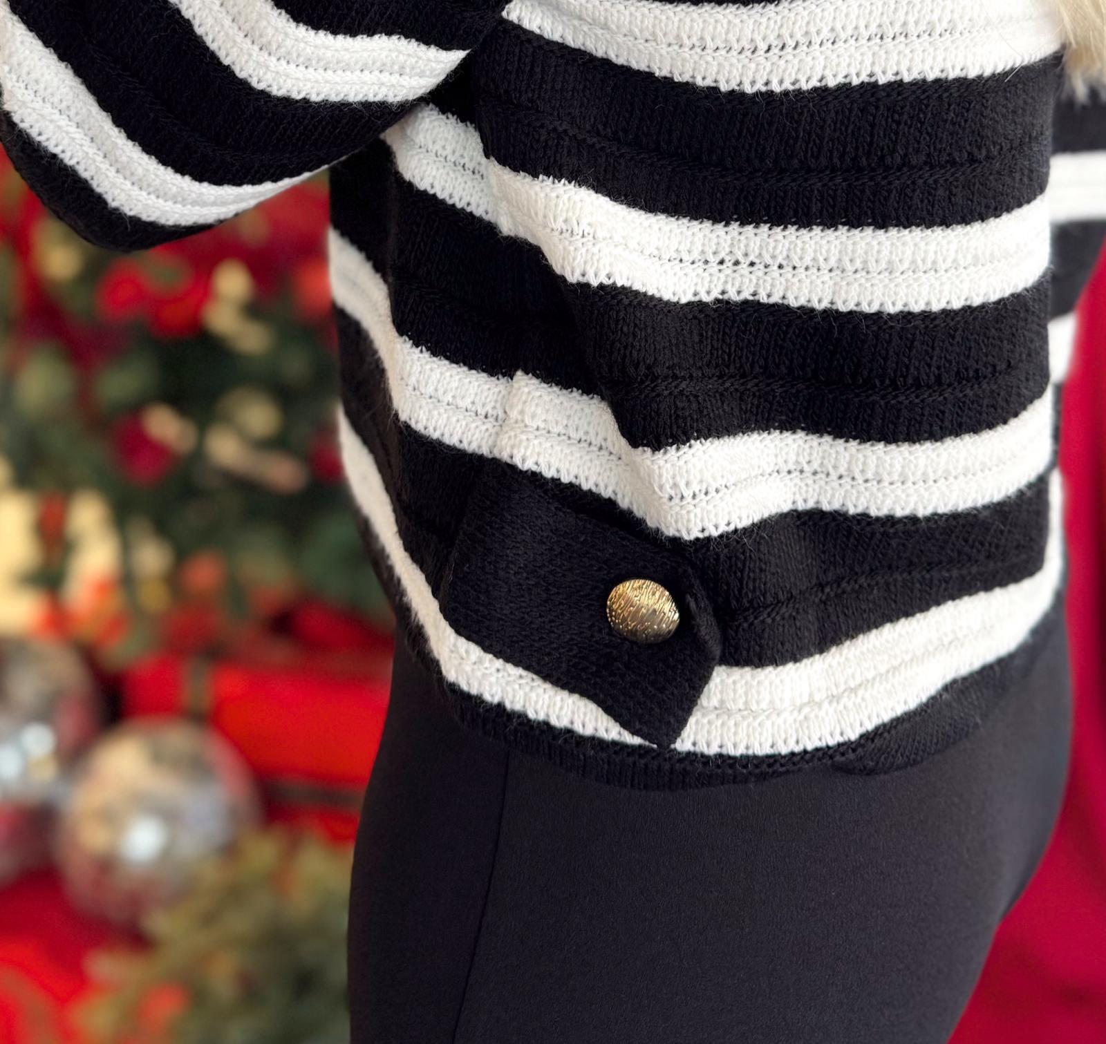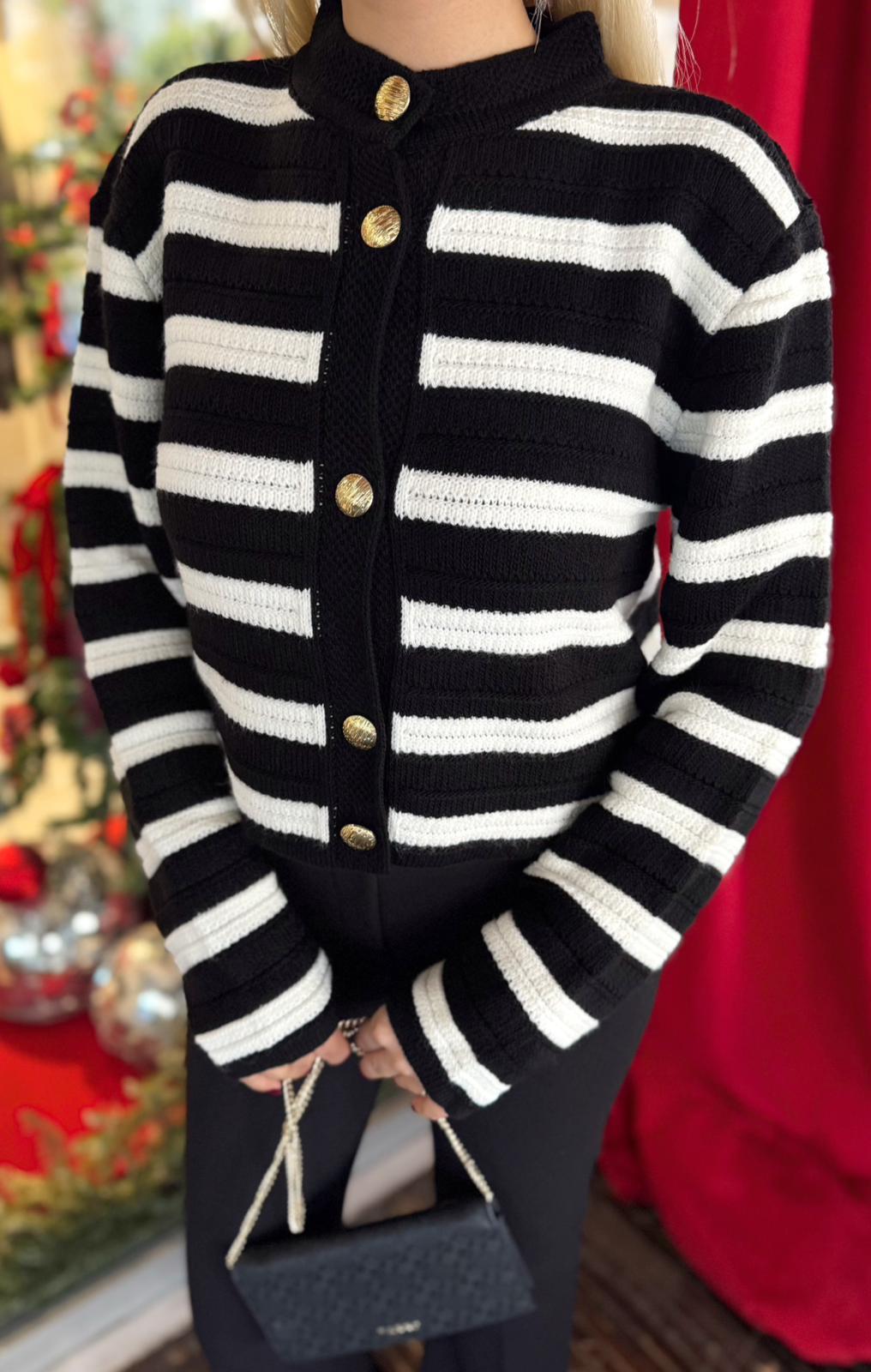 MARKA MODEL MASSİ ÇİZGİLİ GOLD DÜĞMELİ HIRKA - SİYAH - STD (ST01679-SİYAH-STD)