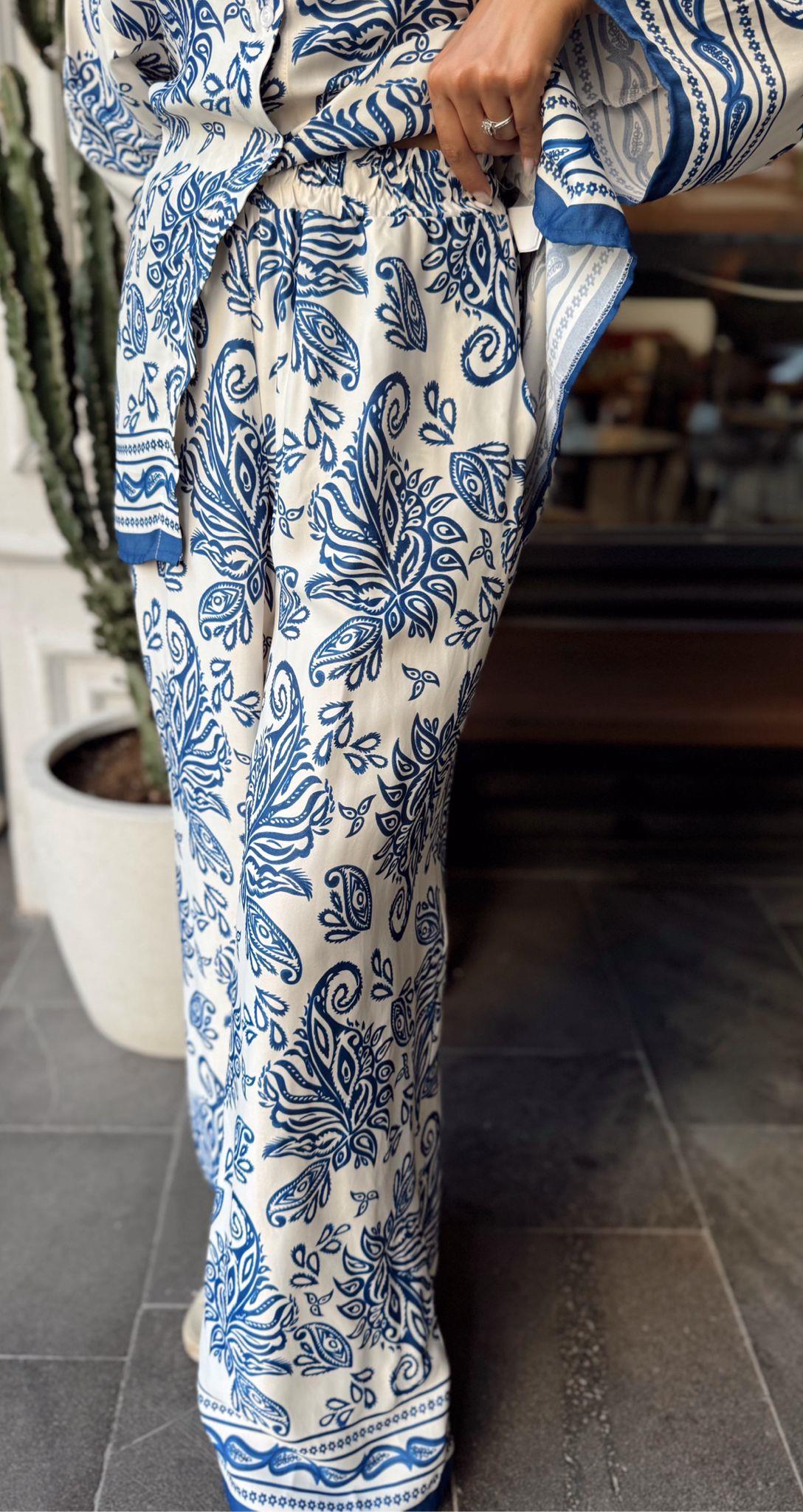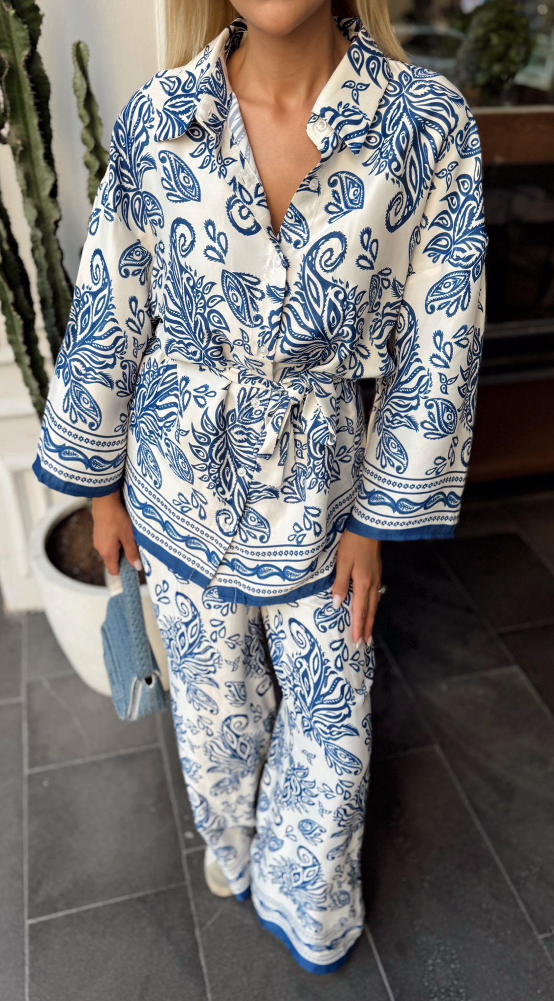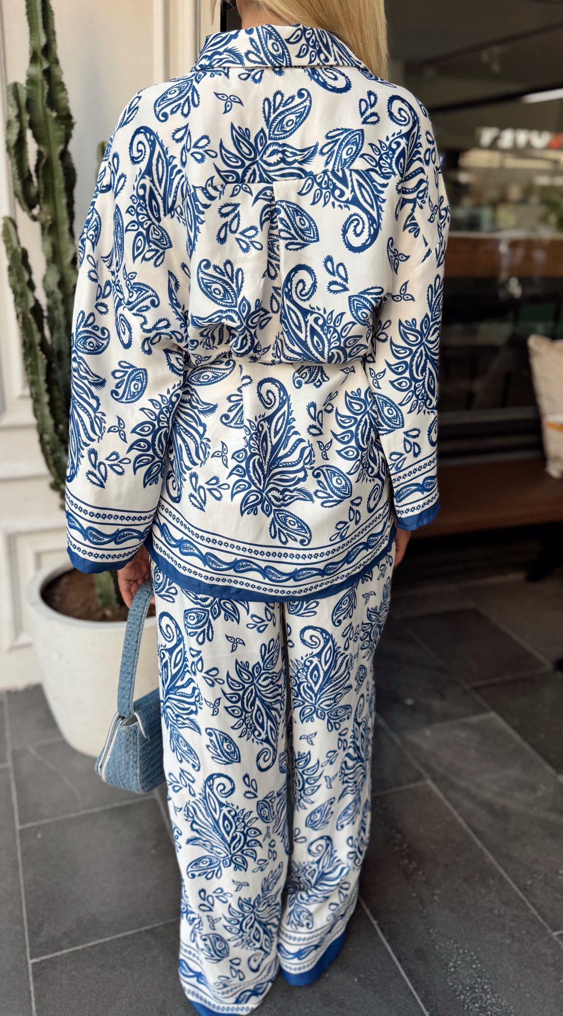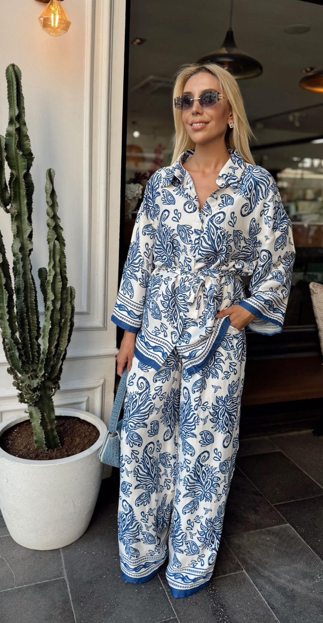 MAVİ DESENLİ PANTOLON GÖMLEK SATEN TAKIM (ST01469-MAVİ-S)