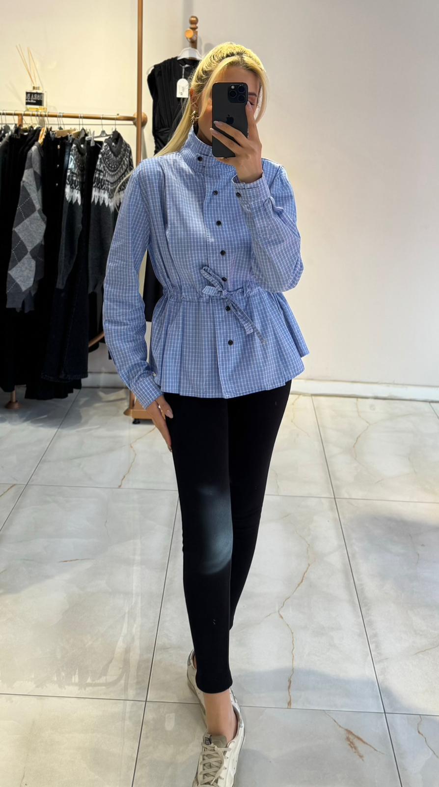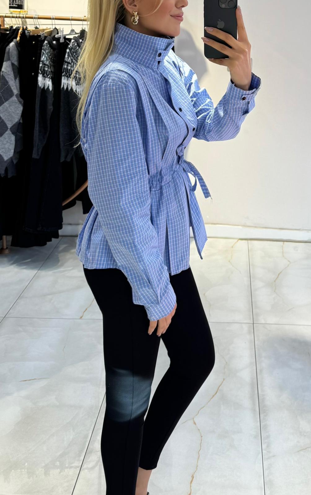 MAVİ PÖTİKARELİ BÜZGÜ DETAYLI GÖMLEK (ST01717-MAVİ-S)