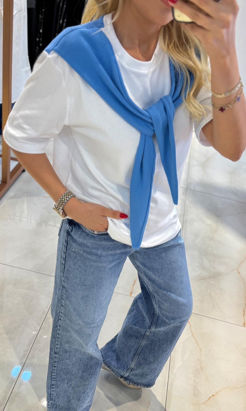 MAVİ ŞAL BAĞLAMALI BEYAZ TSHİRT (ST01736-BEYAZ-S)