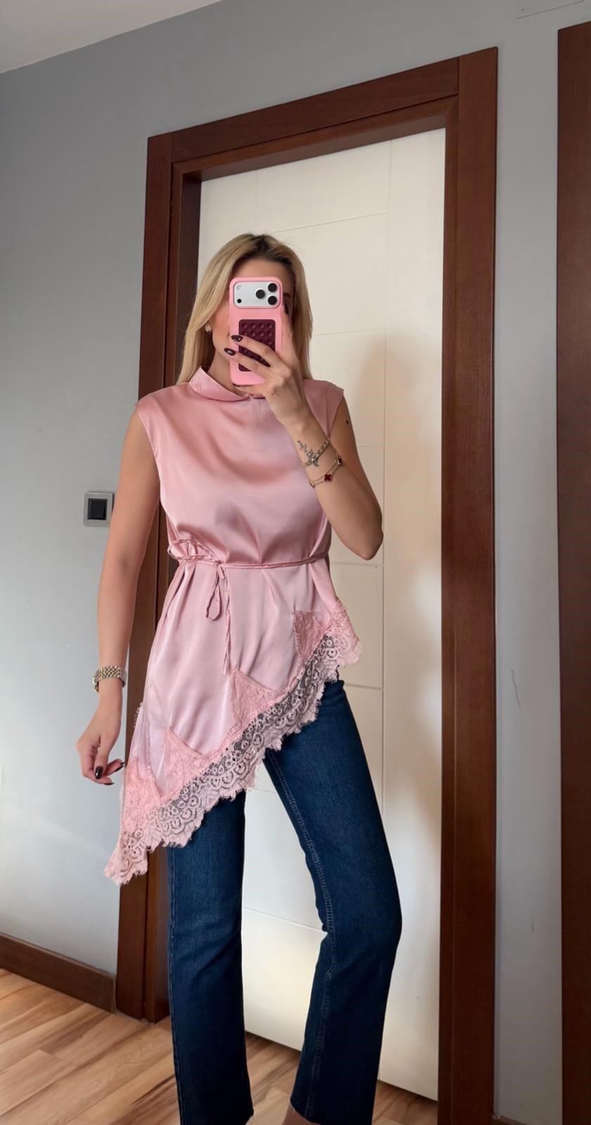 PEMBE KOLSUZ DANTEL BLUZ (ST01797-PEMBE-S)
