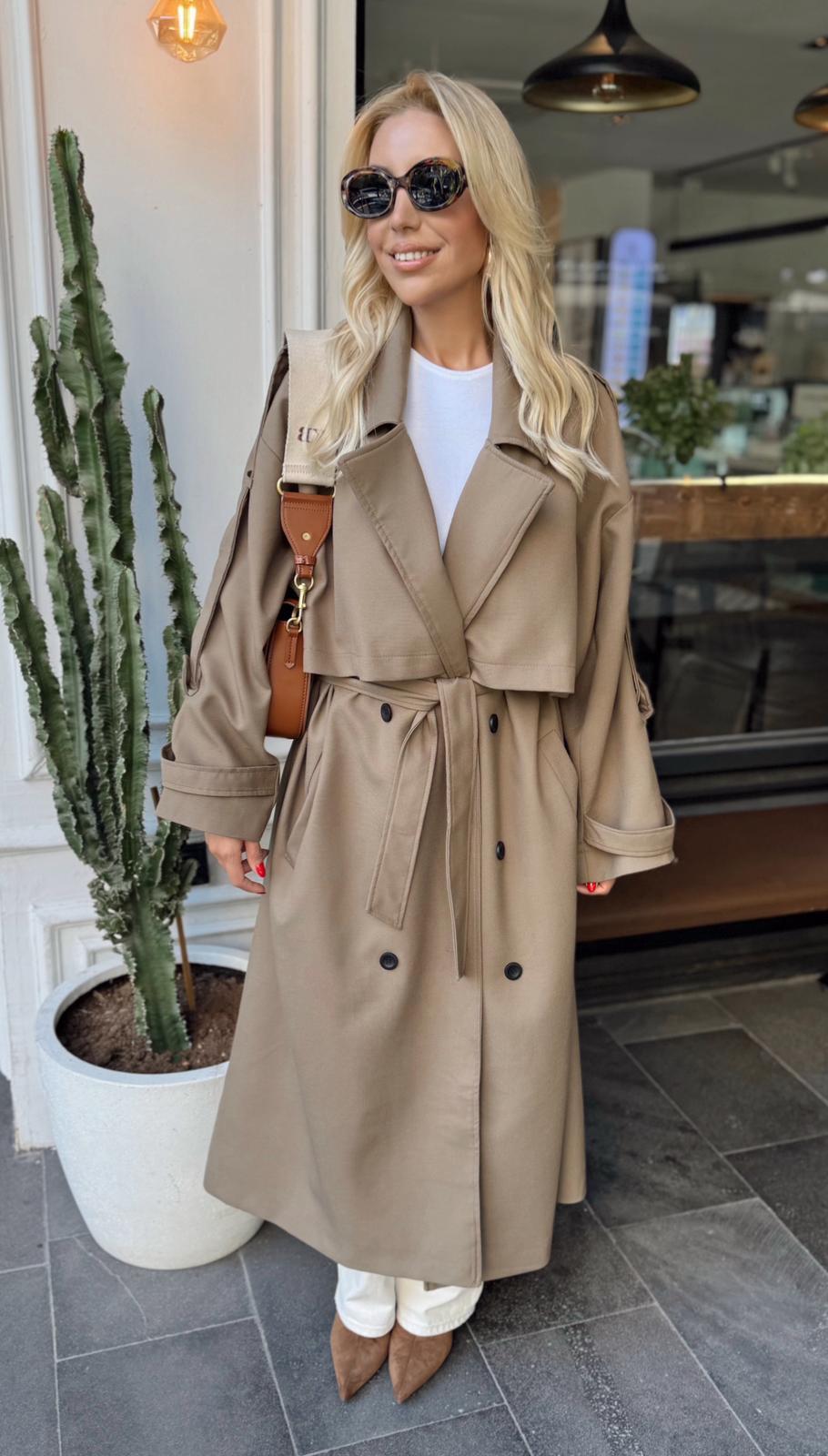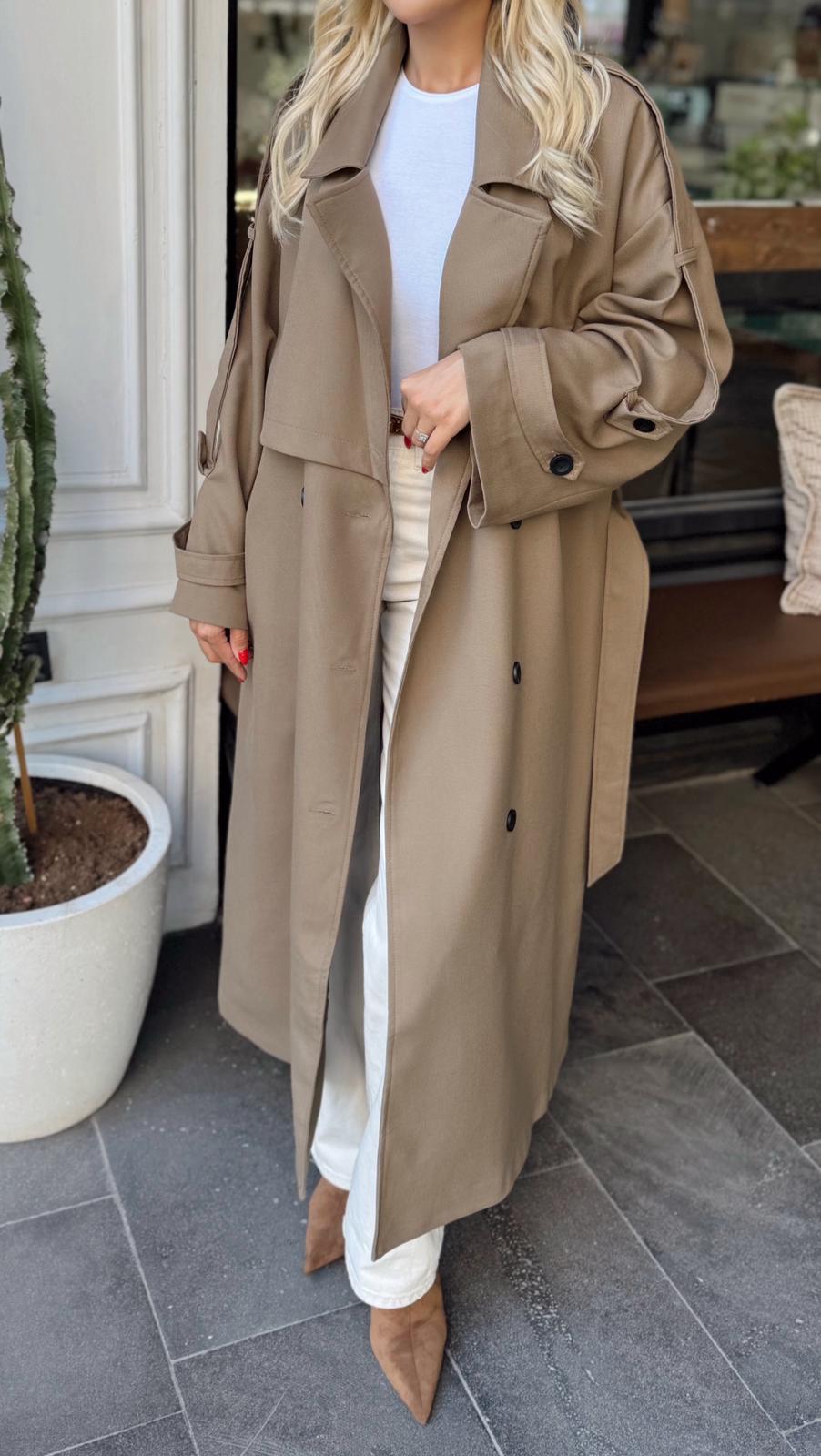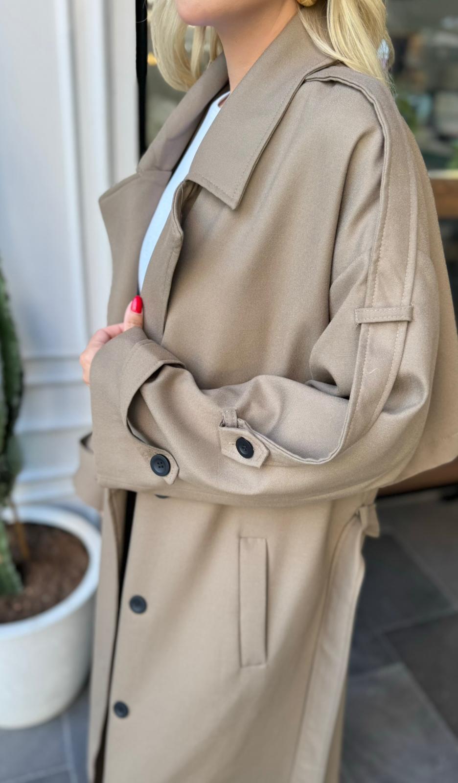 PREMİUM İÇ ASTARLI KUŞAKLI TRENÇKOT (ST01512-KARAMEL-STD)