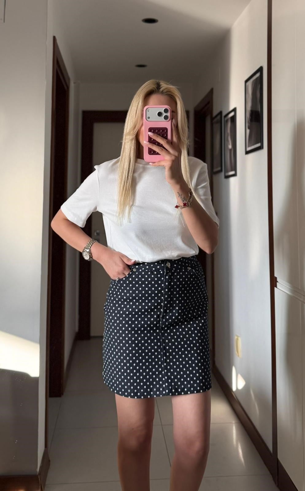 PUANTİYELİ DENİM ETEK (ST01865-LACİVERT-S)
