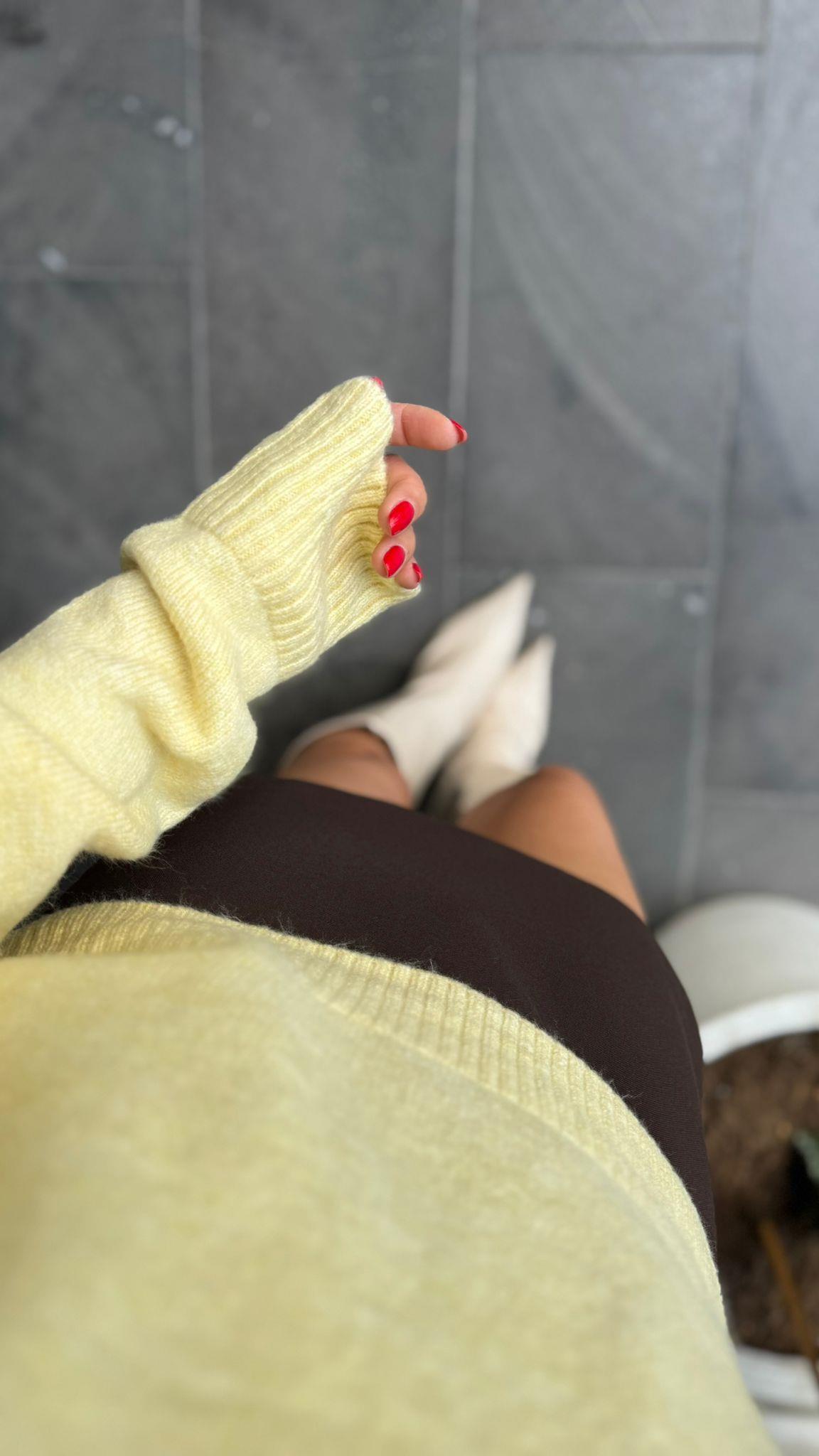 SARI DEKORATİF YAKA TRİKO KAZAK (ST01519-SARI-STD)