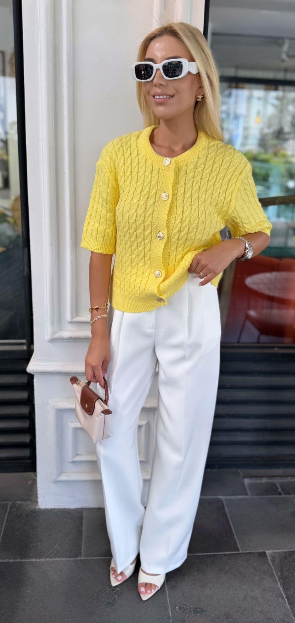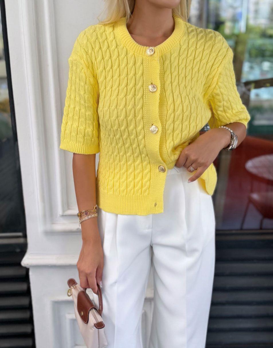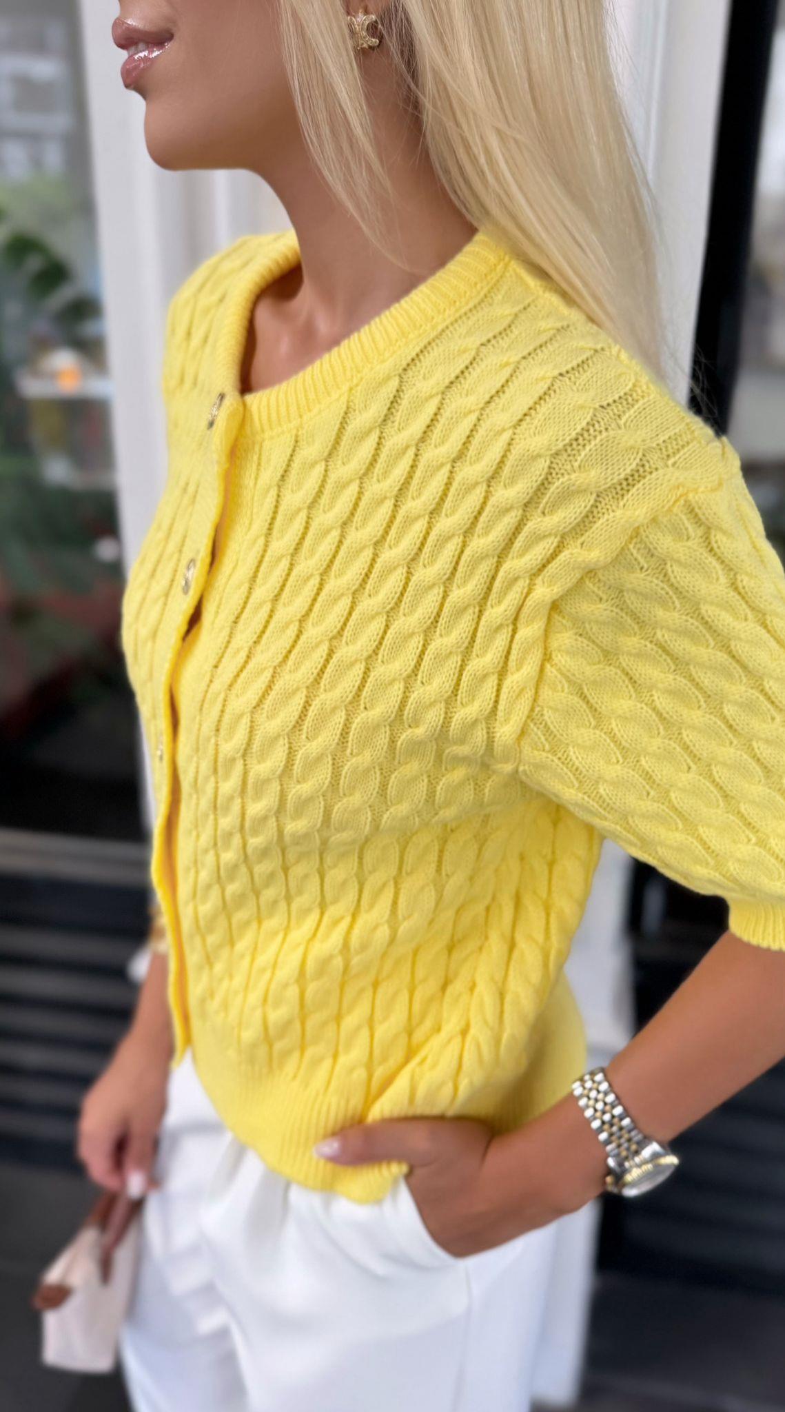 SARI GOLD DÜĞMELİ SAÇ ÖRGÜ TRİKO HIRKA (ST01458-SARI-STD)