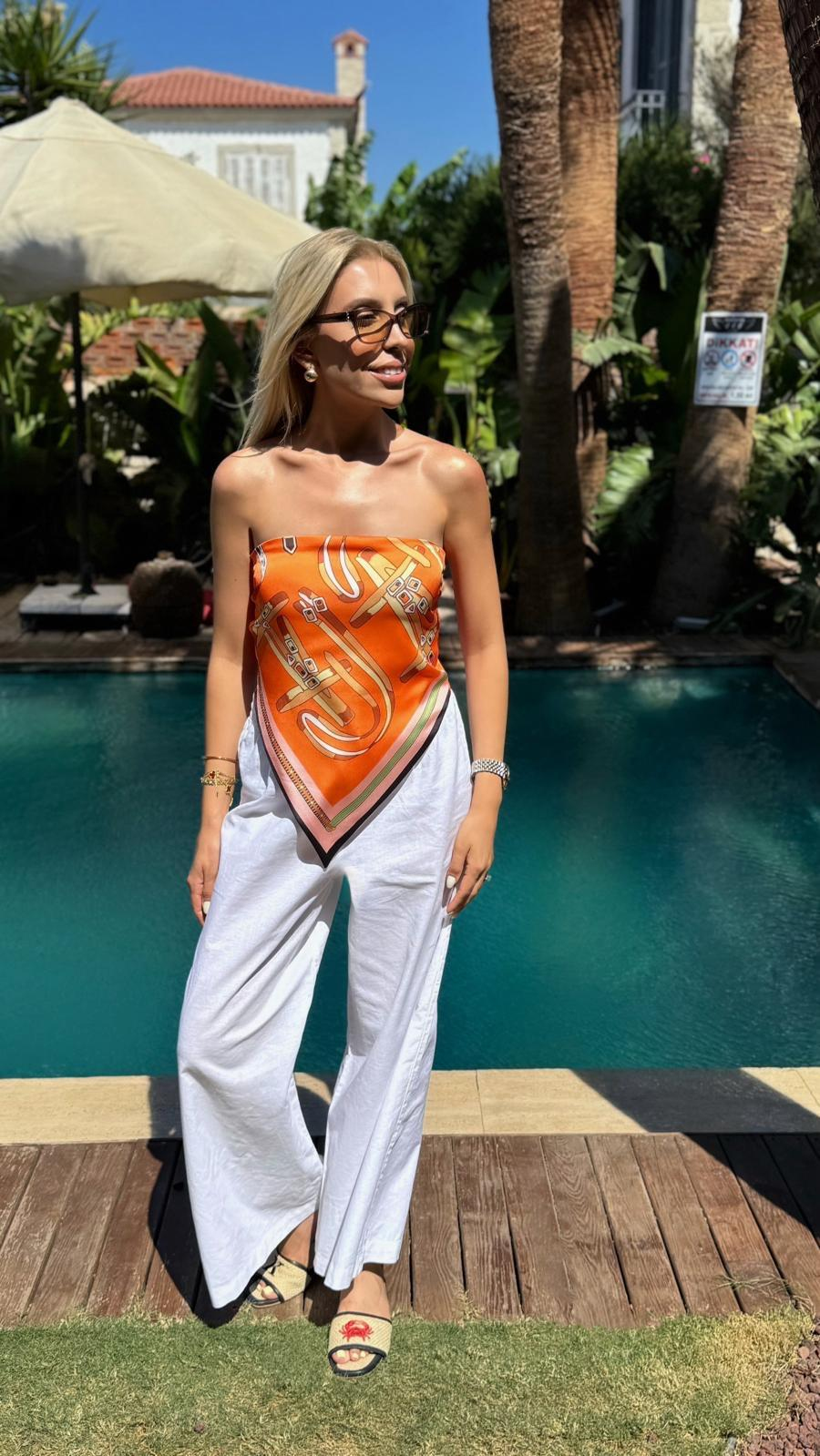 SATEN DESENLİ ŞAL BLUZ TURUNCU (ST01433-TURUNCU-S)