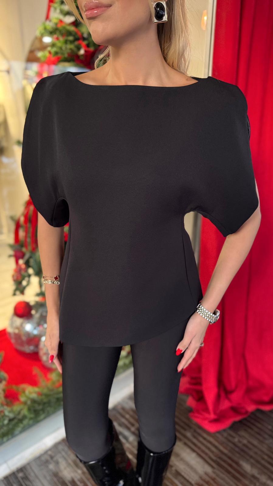 SİYAH BALON KOL ASİMETRİK BLUZ (ST01637-SİYAH-S)