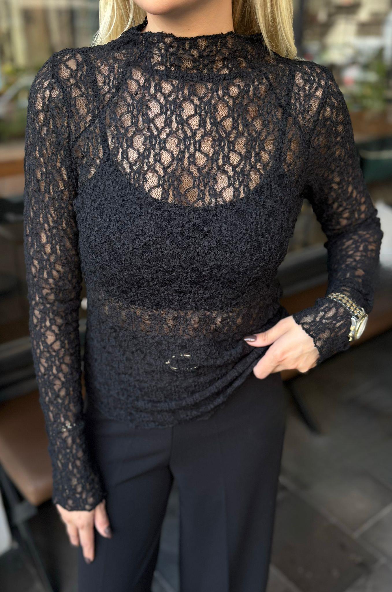 SİYAH DİK YAKA DANTEL BLUZ (ST01596-SİYAH-S)