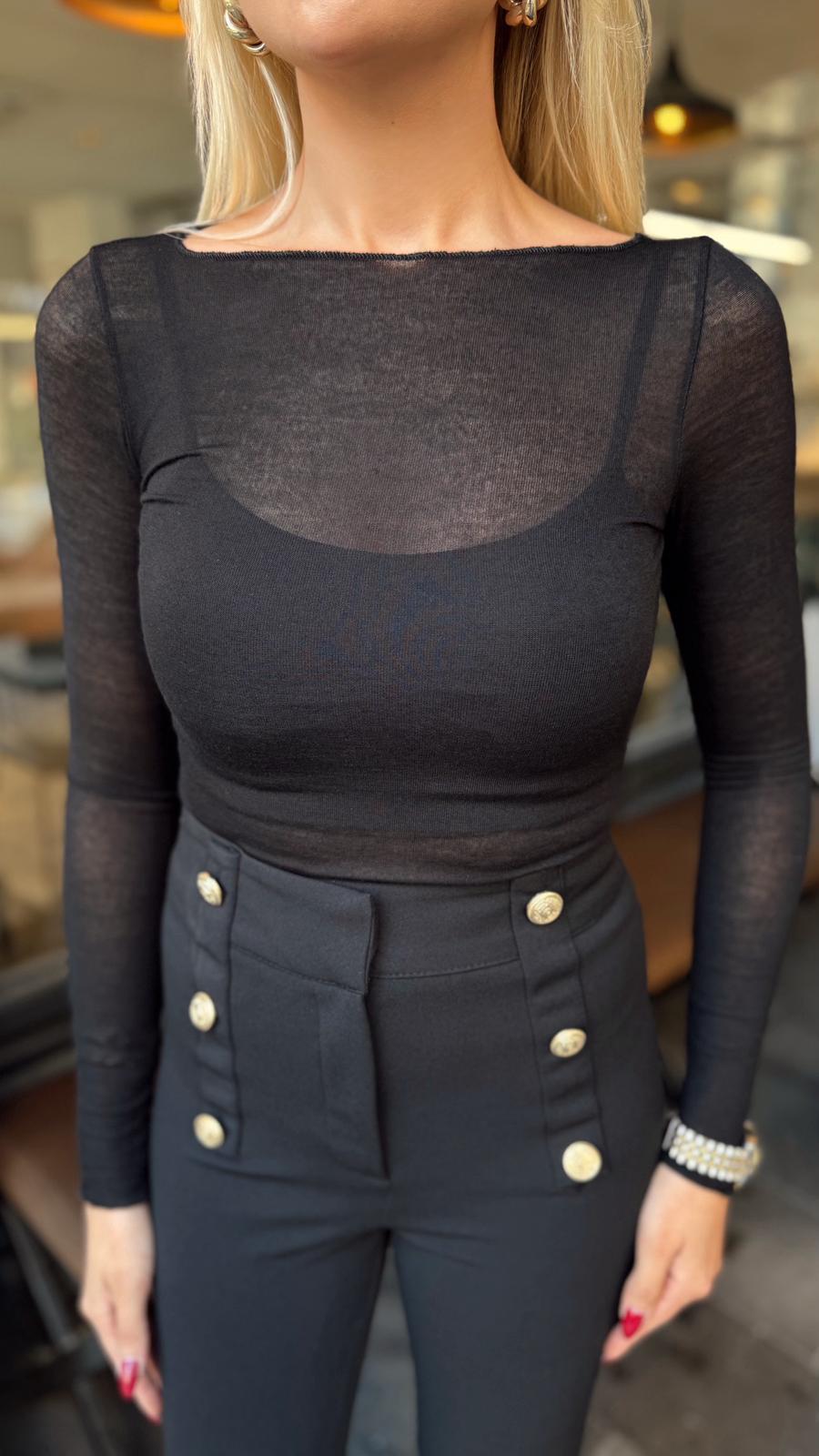 SİYAH KAYIK YAKA TRANSPARAN BLUZ (ST01518-SİYAH-S)
