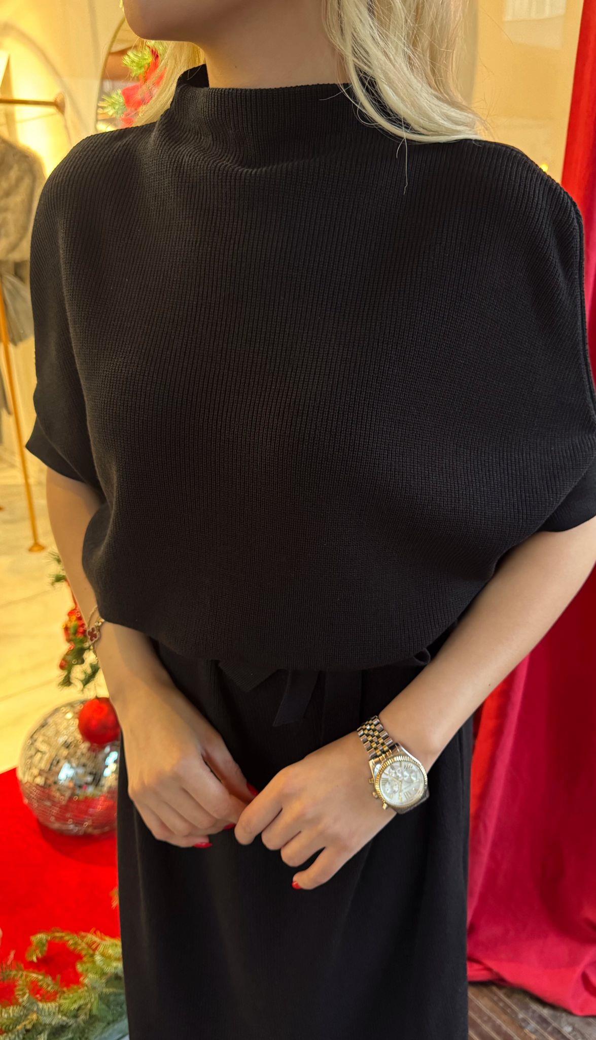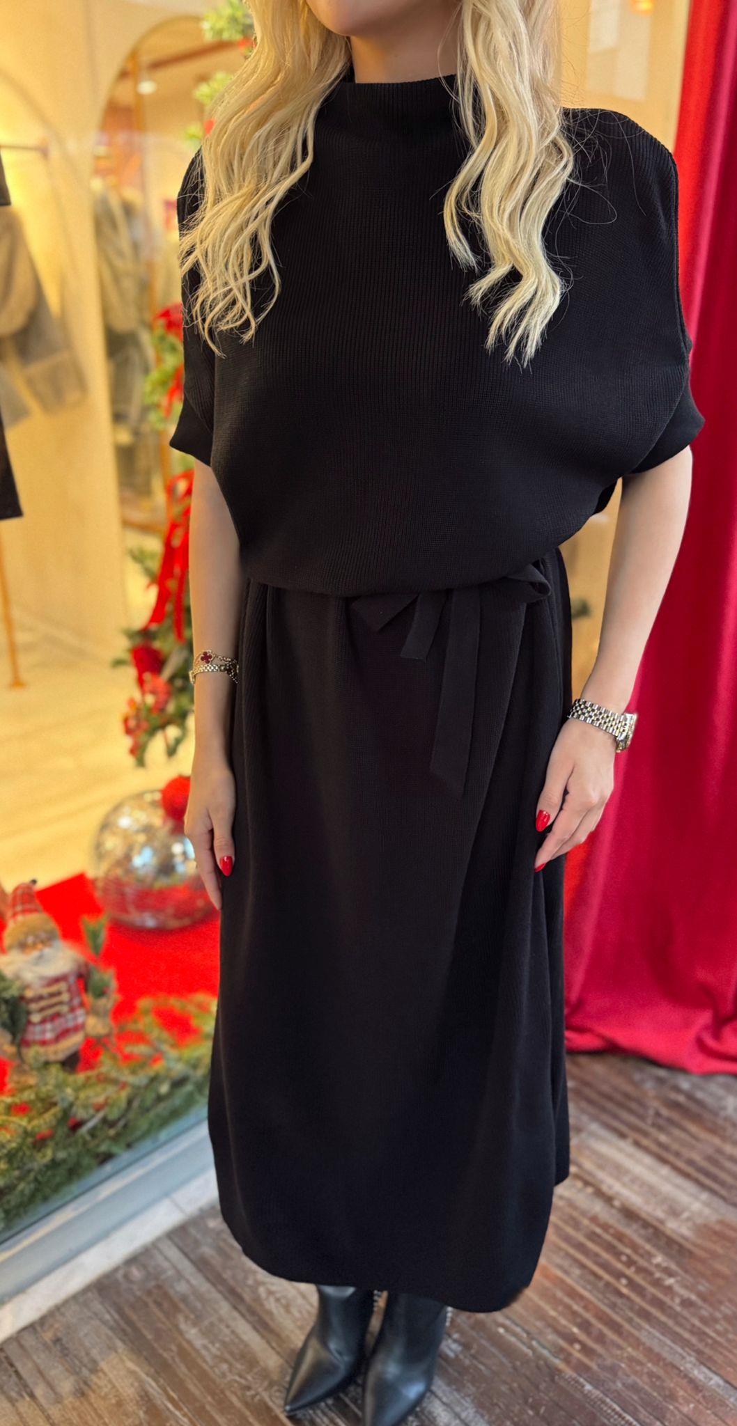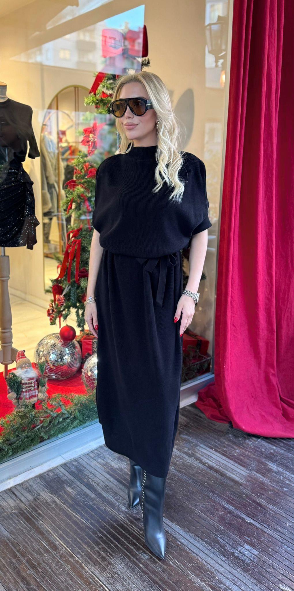 SİYAH KUŞAKLI TRİKO MİDİ ELBİSE (ST01614-SİYAH-STD)
